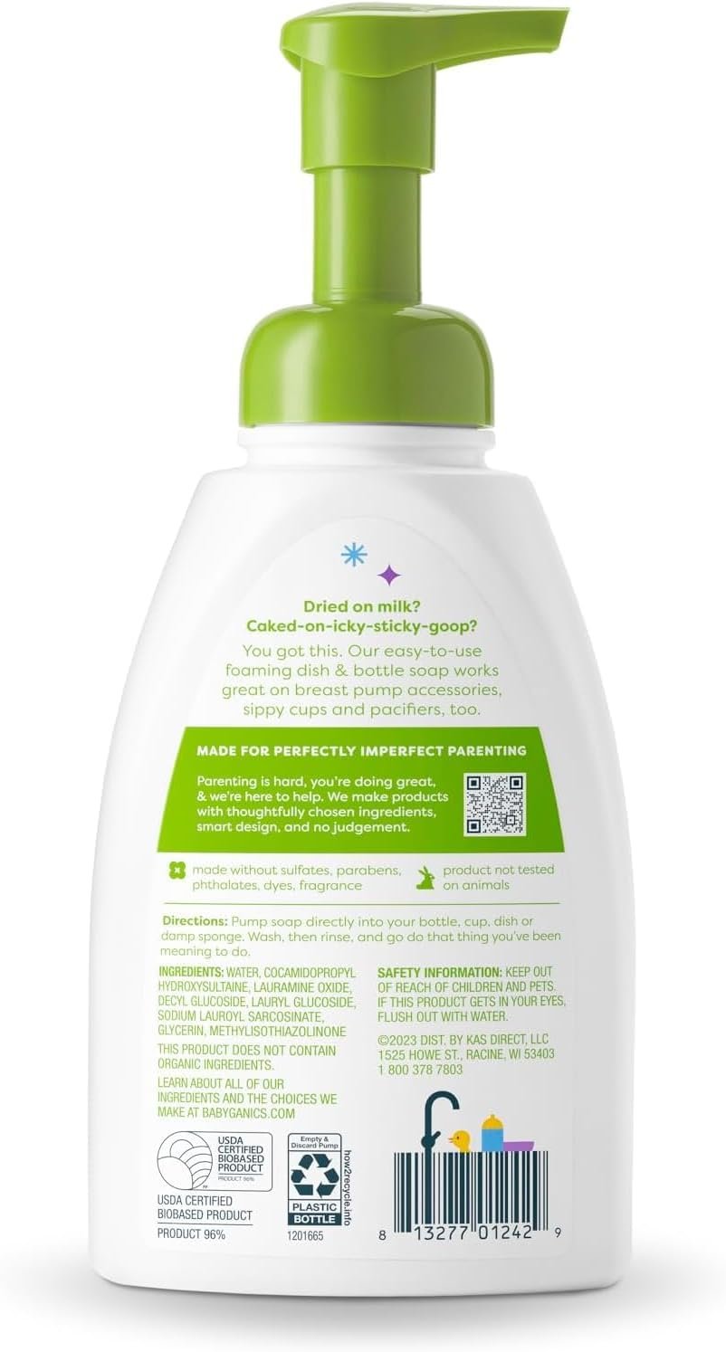 Babyganics Foaming Dish Soap, Pump Bottle, Fragrance Free, 16oz, 3 Pack