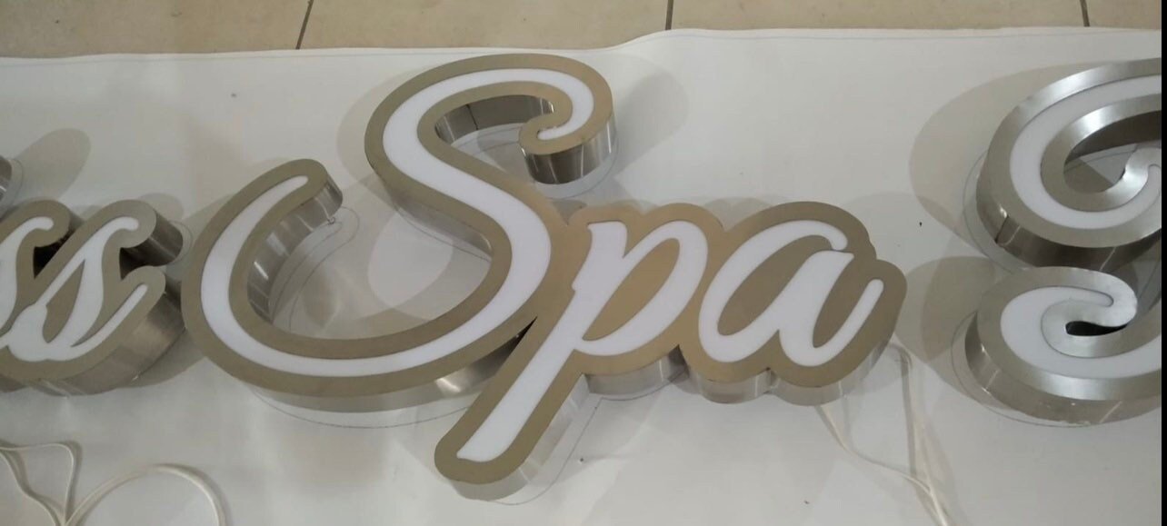 3D Metal Backlit Sign : Custom Business Sign, Overlapping Letters, Illuminated Signboard, Beauty Salon Decor