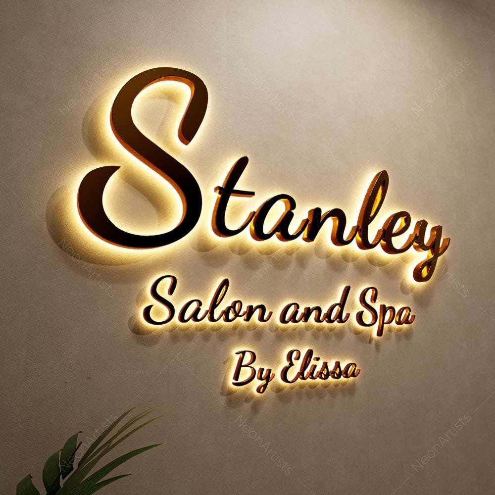 Backlit Sign,Metal Signs,3D Business Sign, LED Metal Logo Sign,,Light Up Logo Signage,Salon Logo Sign,Laser cut Signboard,Halo lit Sign,