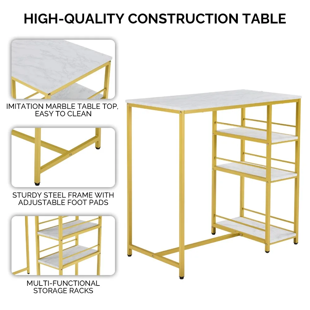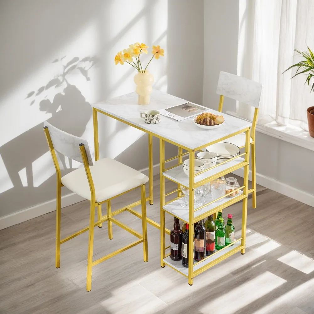 Bar Table Set for 2 Kitchen Breakfast Counter Height Chairs Set with Storage