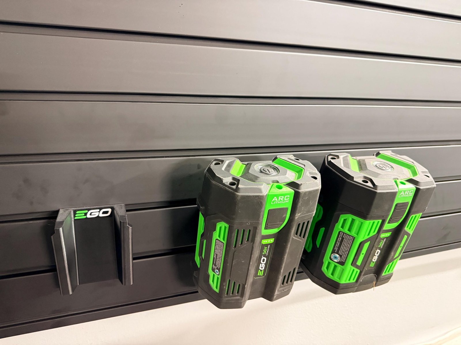 Battery Mounts for EGO 56V Packs – Secure Storage for Slat Wall systems