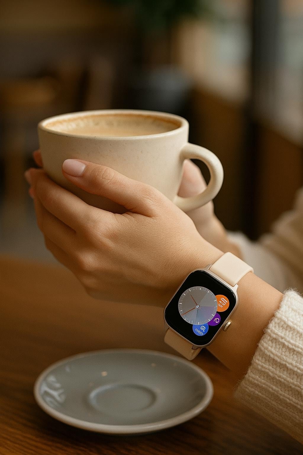 Beige Smart Watch with Silicone Band – Fitness Tracker, Heart Rate Monitor, Sleep Tracking, IP67 Waterproof, for iOS & Android