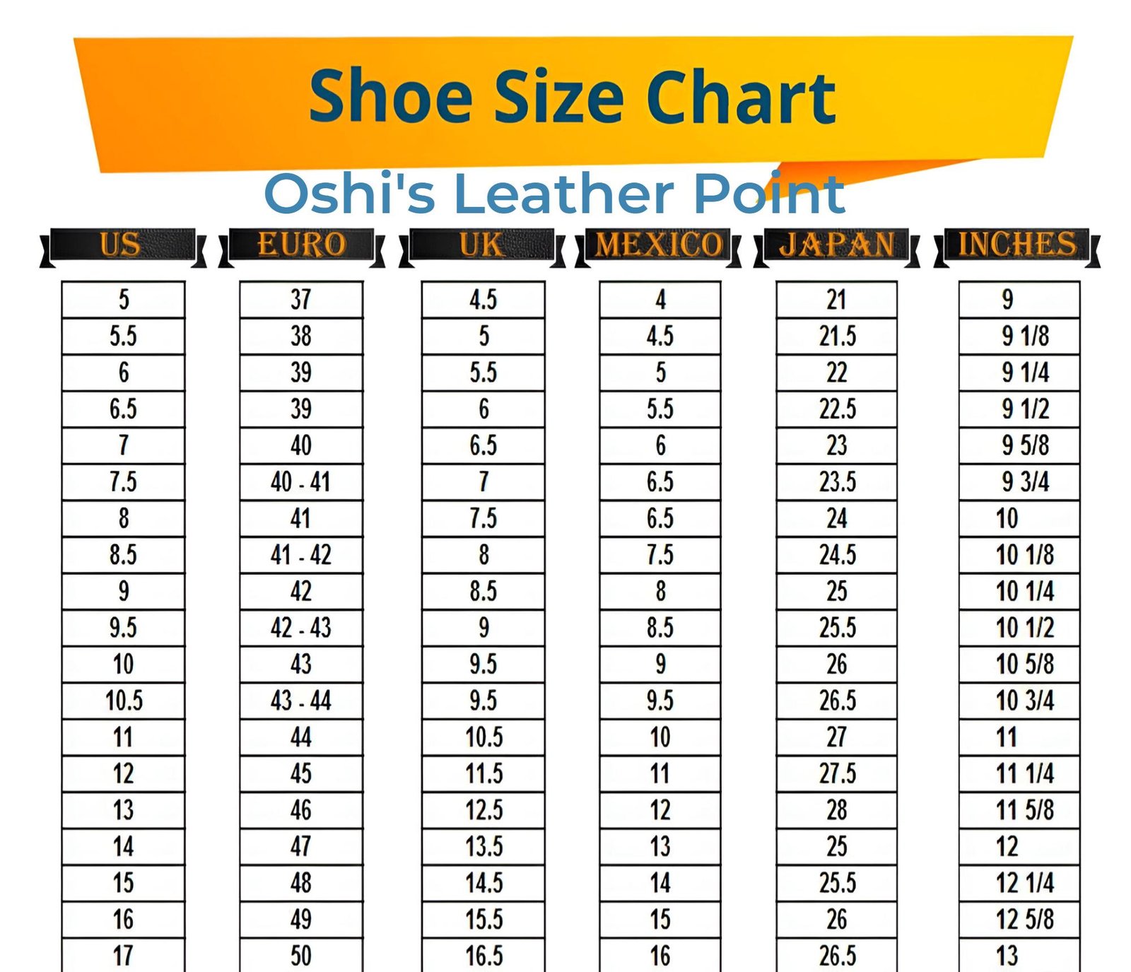 IMPORTANT NOTE Please measure your foot size according to the size chart given in the Images for a perfect fit before placing the order. If you can’t find your required Size or Color just send us message we will make the shoes according to you requirement. Please choose size according the foot length. 99% buyers choose right size by measuring the foot length.
