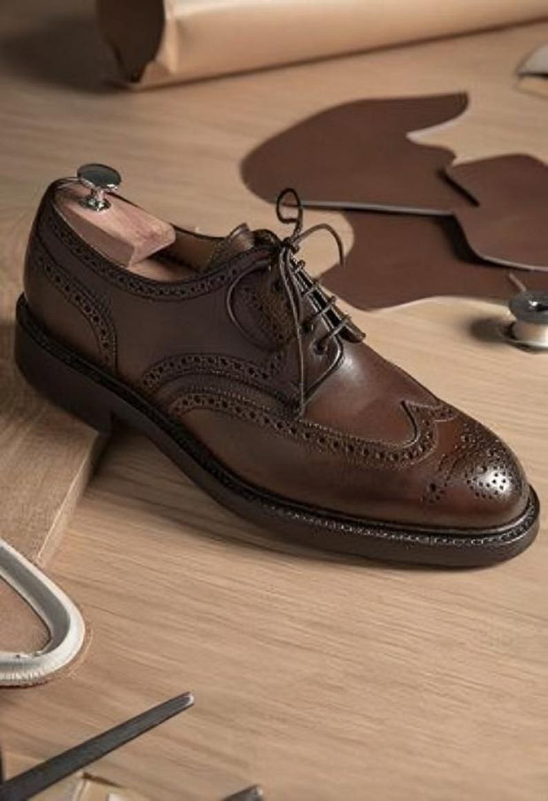 Bespoke Handmade Brown Leather Dress Shoes Men, Dress Shoes For Men, Men Formal Lace Up, Casual Brogue Shoes, Genuine Cow Leather Shoes Men