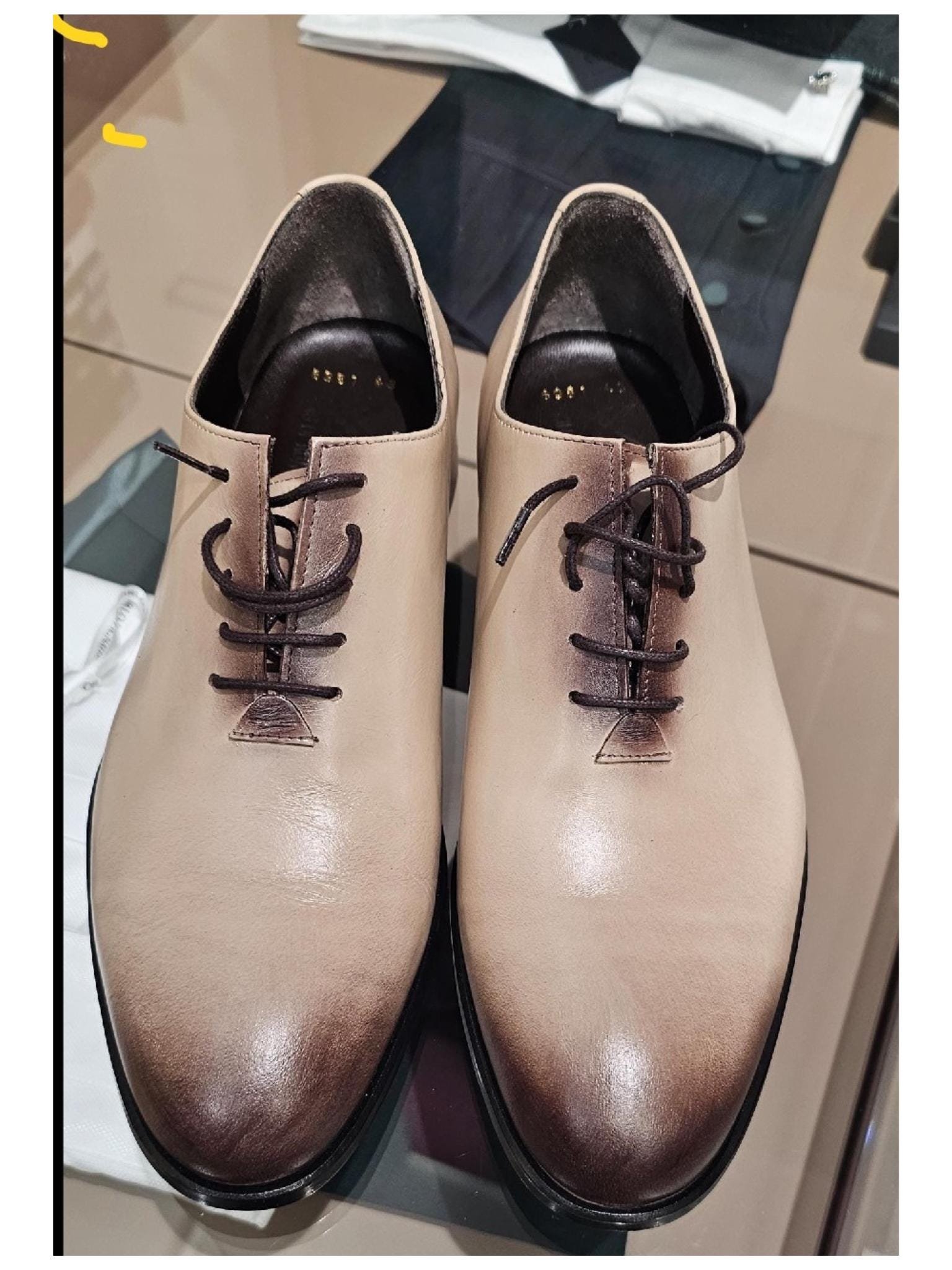 Bespoke Men's Handmade Beige Leather Lace up Dress Shoes