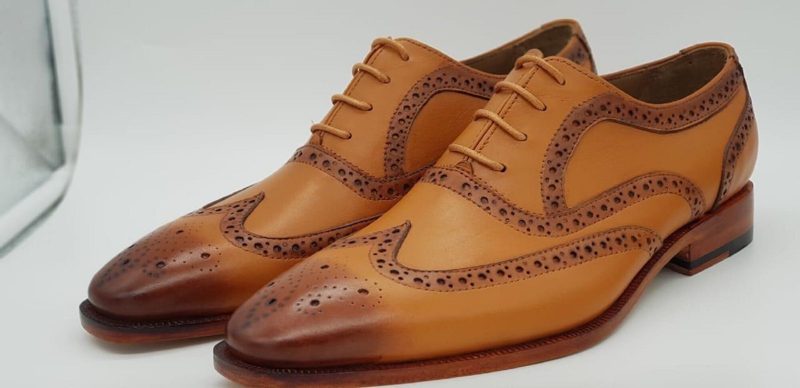 Bespoke Men's Handmade Tan Color Genuine Leather Wing Tip Brogues Lace Up Oxford Shoes, Wedding Shoes, Gift For Him, Men Custom Shoes