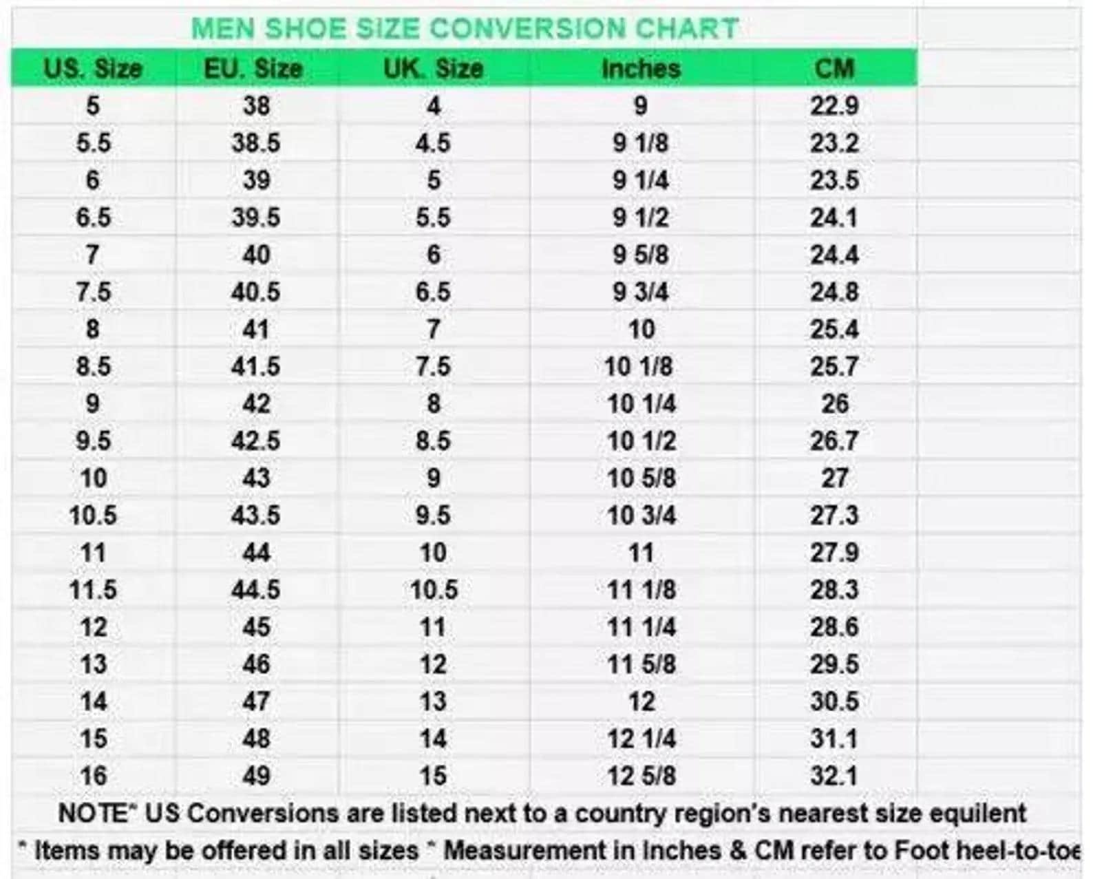 5 US men's ,6 US men's ,6.5 US men's ,7.5 US men's ,8.5 US men's ,9 US men's ,9.5 US men's ,10 US men's ,10.5 US men's ,11 US men's ,11.5 US men's ,12 US men's ,12.5 US men's ,13 US men's ,13.5 US men's ,14 US men's ,14.5 US men's ,15 US men's |