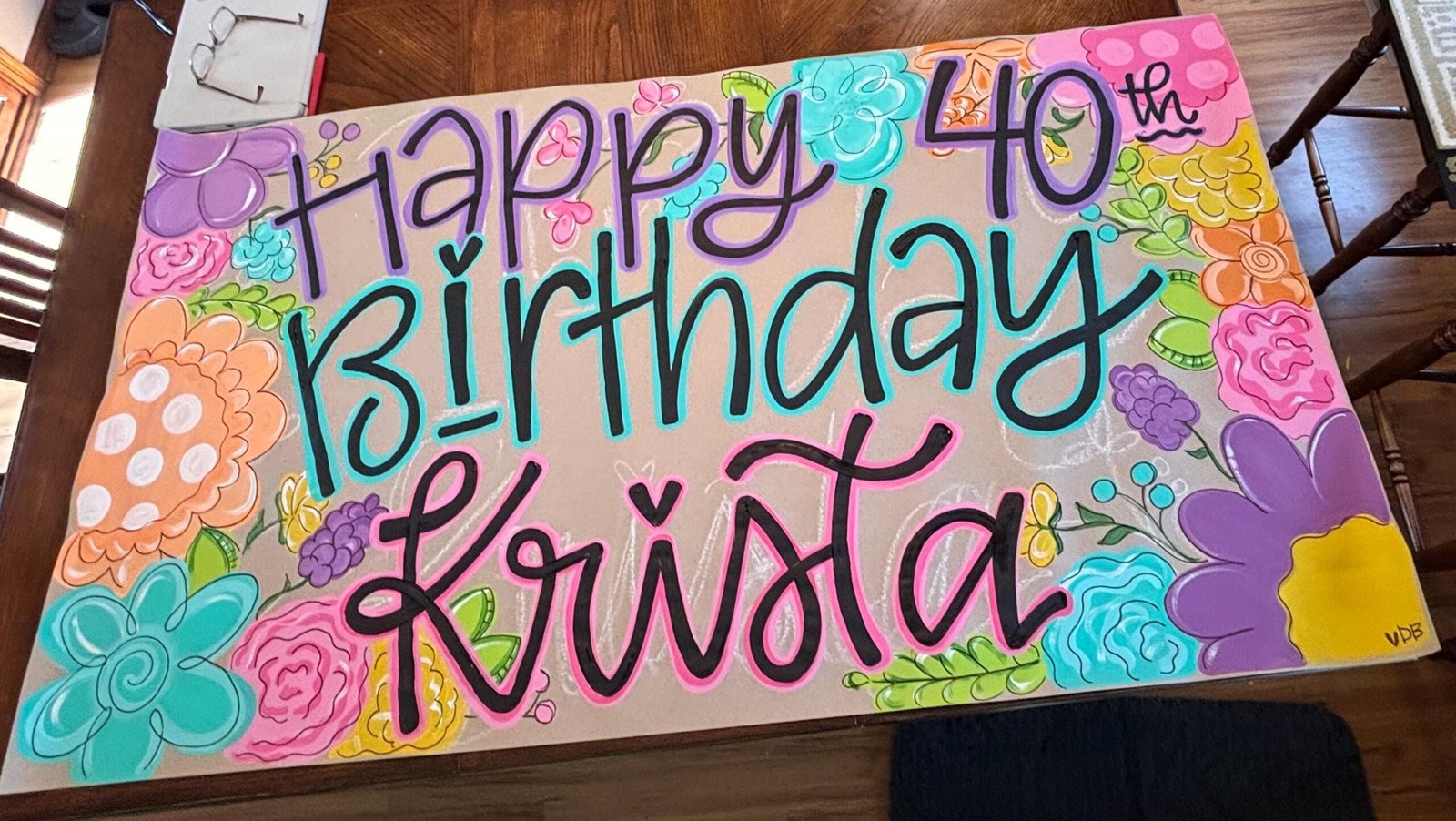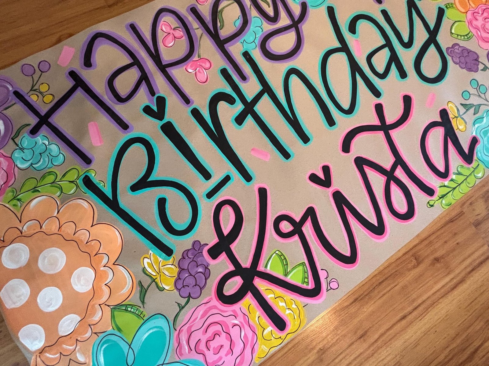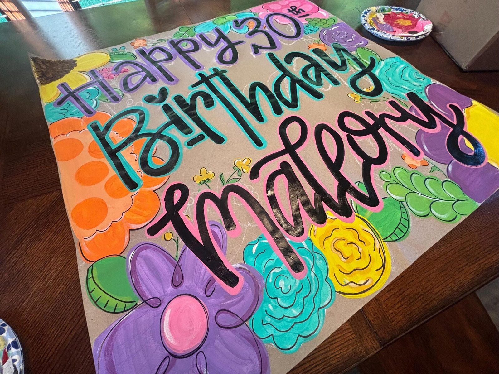 Birthday Flower Kraft Banner – Hand Painted Party Banners – Kraft Party Decorations – Birthday Sign – Posters