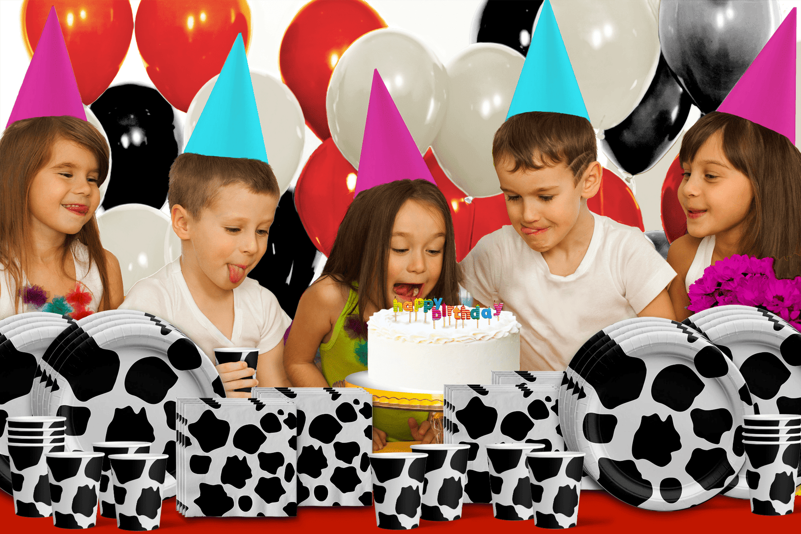 Enhance your birthday party with our Cow Print Birthday Party Tableware Kit. This kit includes plates, cups, and napkins for 16 guests, featuring a charming cow print design. Perfect for any farm-themed celebration, this kit provides all the essentials for an enjoyable and hassle-free party experience.