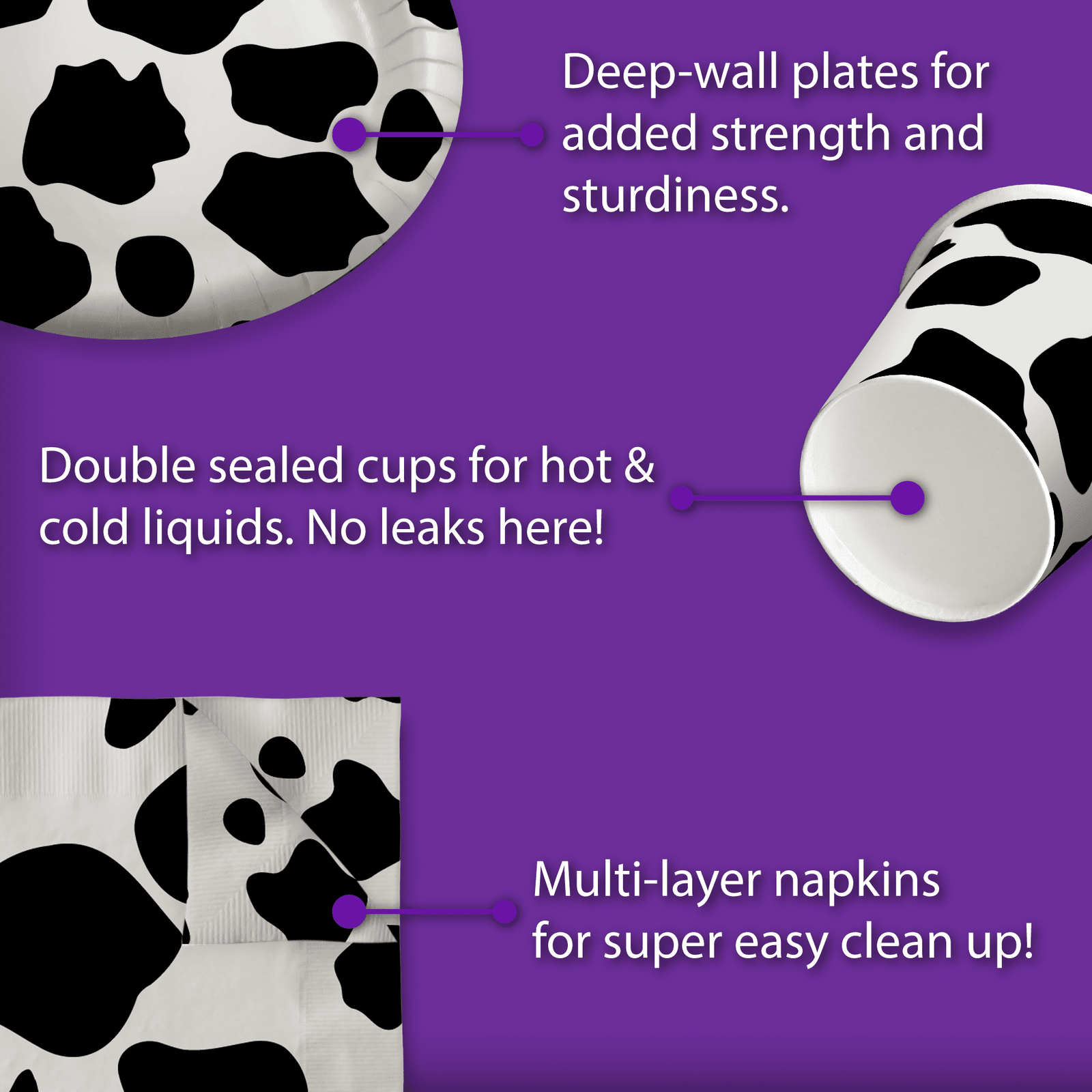 Birthday Galore Cow Print Birthday Party Supplies Set, Plates, Napkins, Cups