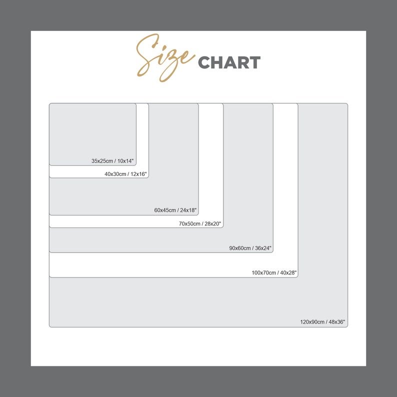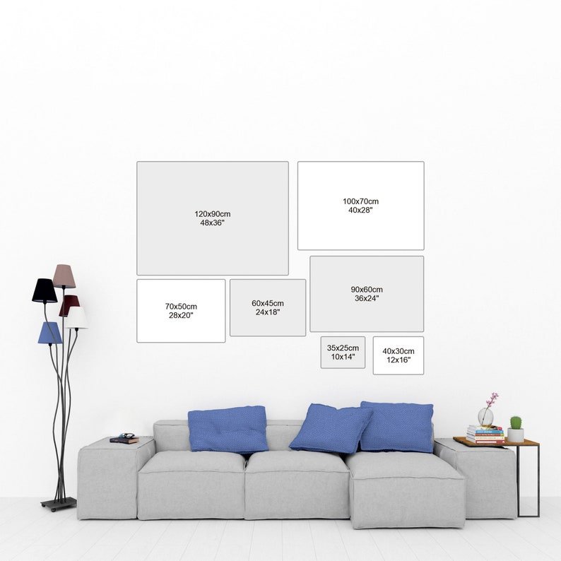 48 x 36 inch 120 x 90 cm, 40 x 28 inch 100 x70 cm, 36 x 24 inch 90 x 60 cm, 28 x 20 inch 70 x 50 cm, 24 x 18 inch 60 x 45 cm, 12 x 16 inch 30 x 40 cm, 10 x 14 inch 25 x 35 cm