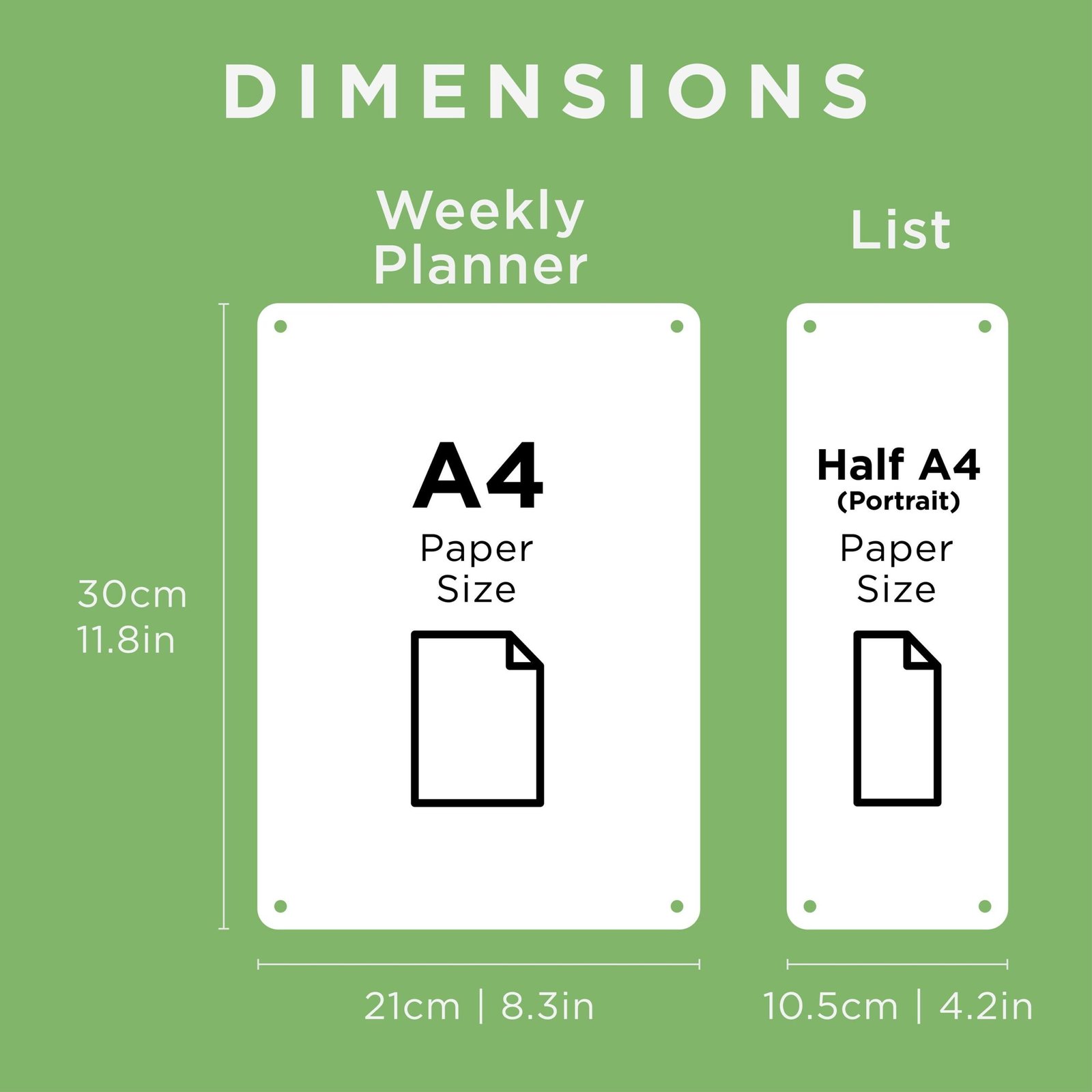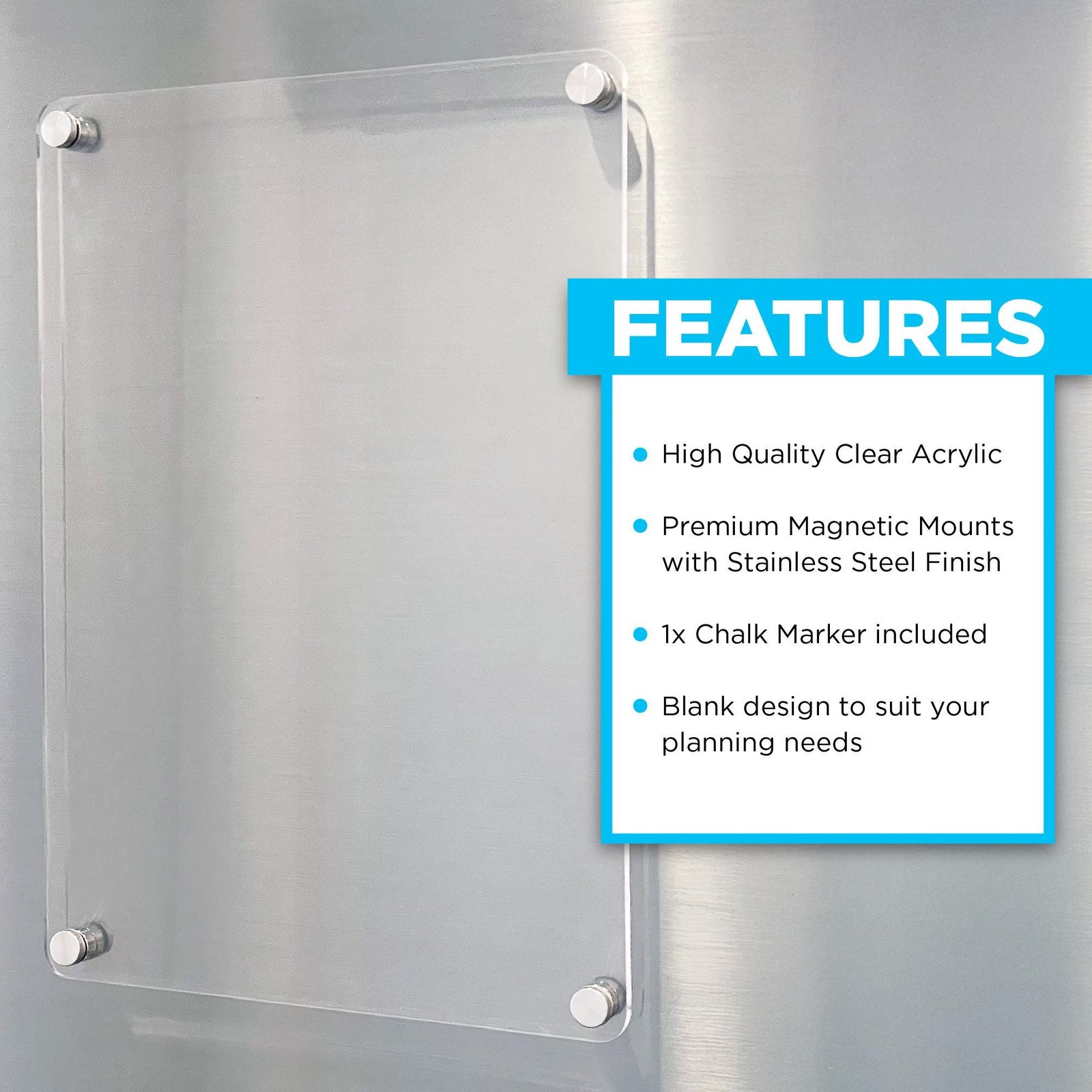 BLANK A4 and LIST COMBO Fridge Acrylic Planner – Premium Clear Acrylic Whiteboard – Family Organiser – Notes Board – Scribble Board