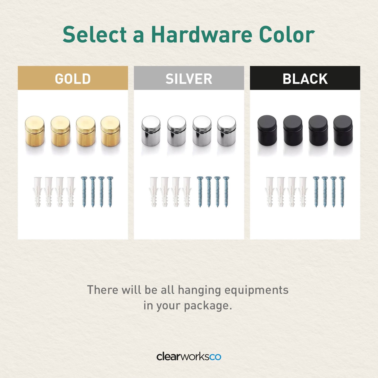 – 4 or 6 pieces of high-quality gold, black or silver mounting hardware 6 for 36×24 and 40×28 only