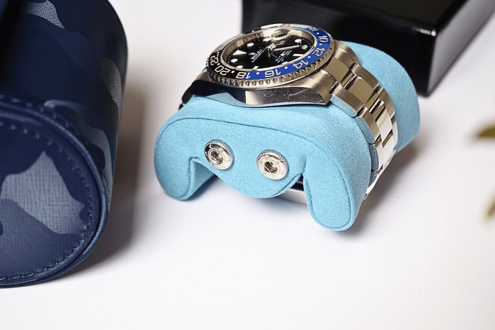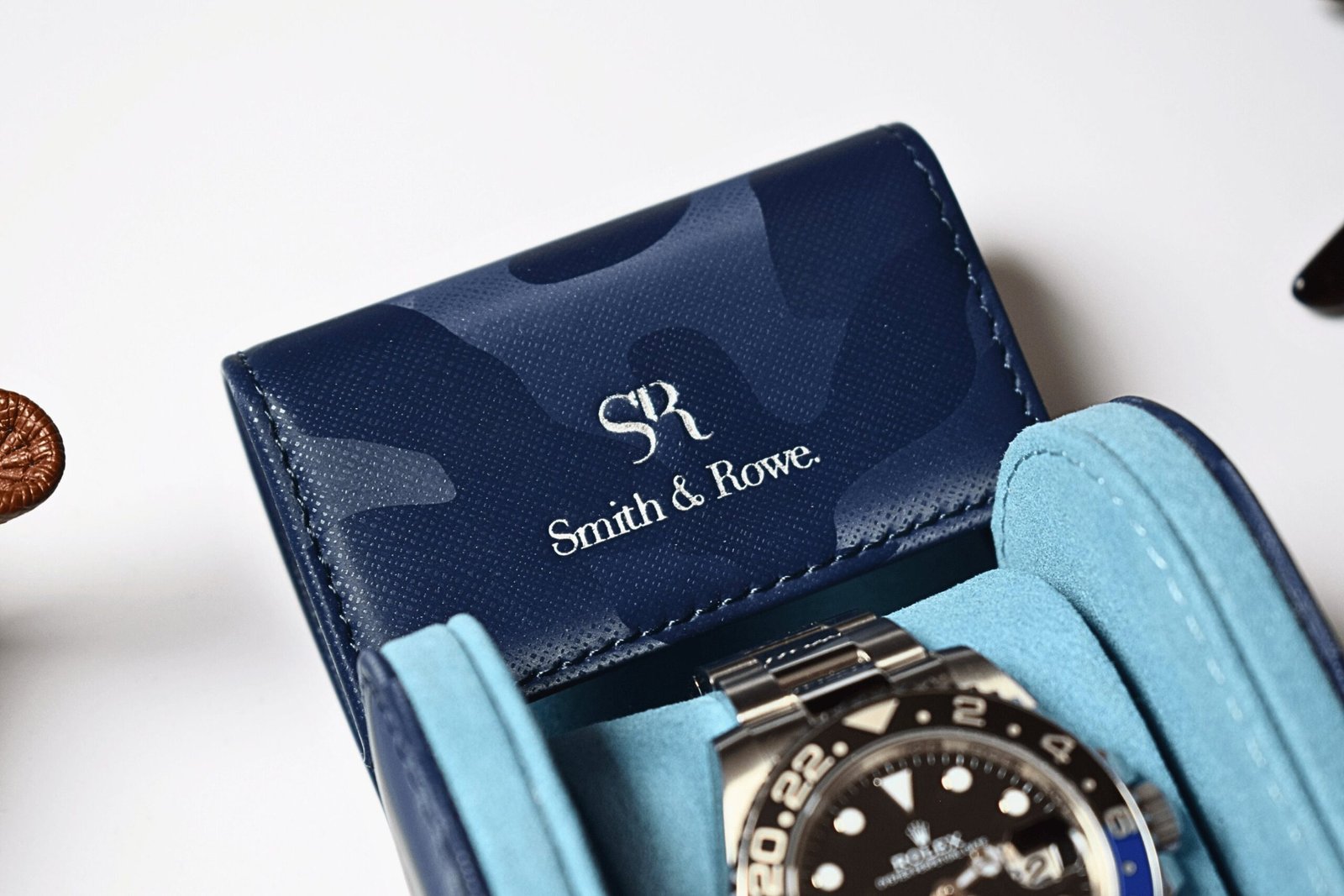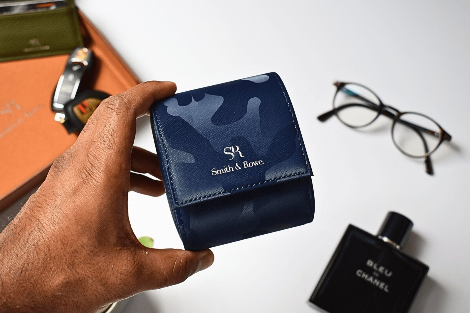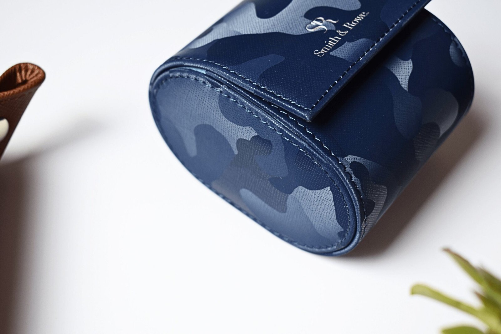 Blue Camo Italian Leather Single Watch Box for Men, Watch Roll, Travel Watch Case, Storage & Organizer, Luxury Watch Holder, Groomsmen Gift