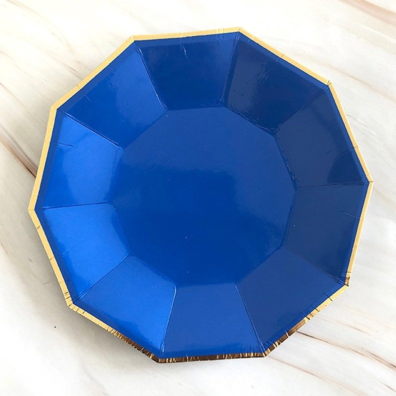 【BIODEGRADABLE AND PREMIUM MATERIALS】Made of 100% food grade materials, Dark Blue Birthday Plates are BPA-free , non-toxic, biodegradable, pollution-free, and recoverable. Dark Blue plates can be degraded by soil rapidly, adding no wastes to the environment. such robust and solid Dark Blue plates are not foldable when carrying foods, Dark Blue gold party supplies great for desserts, party food and beverages.