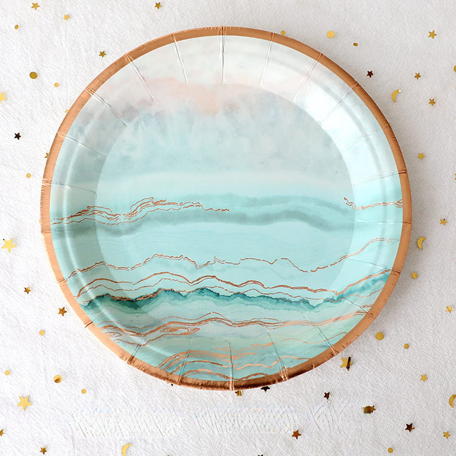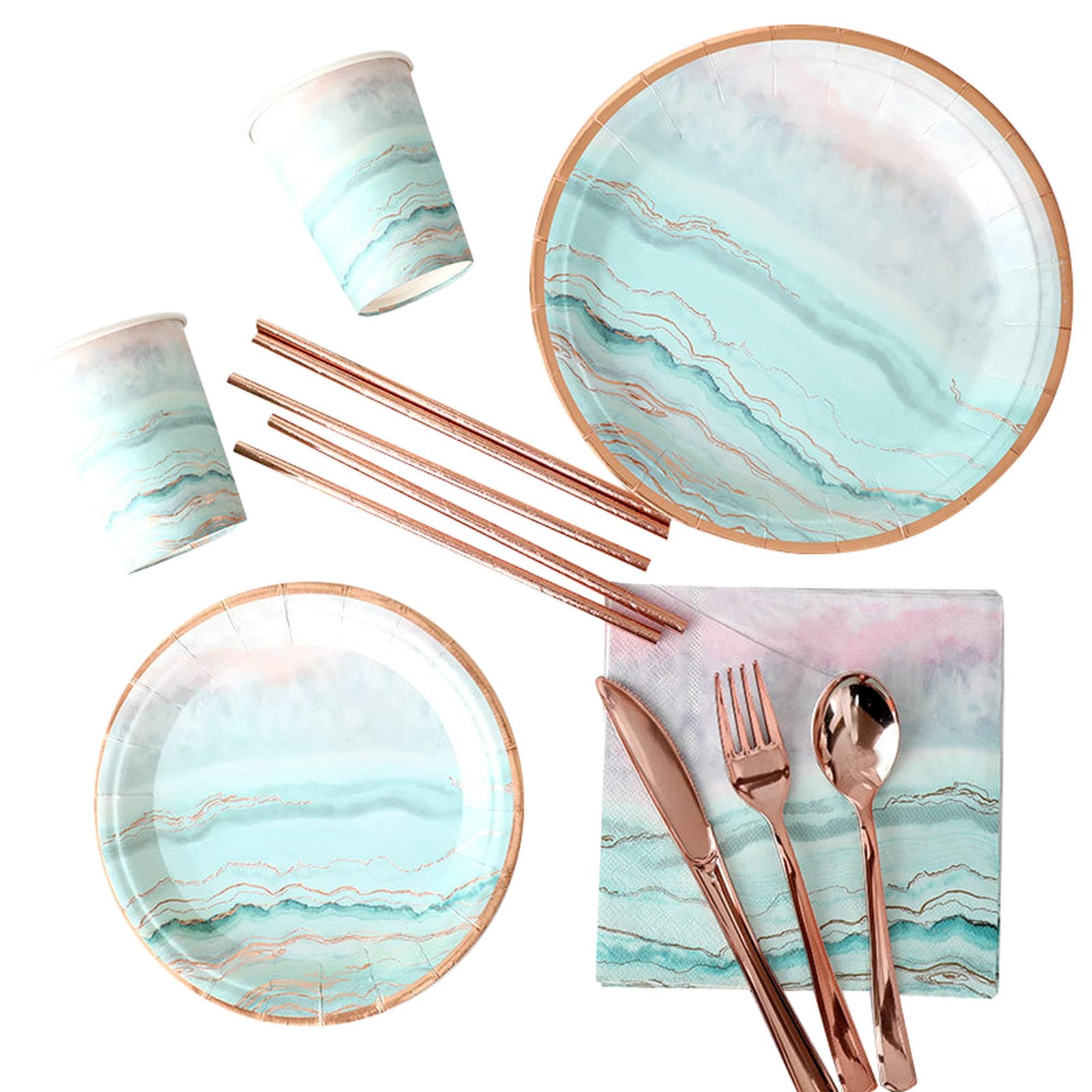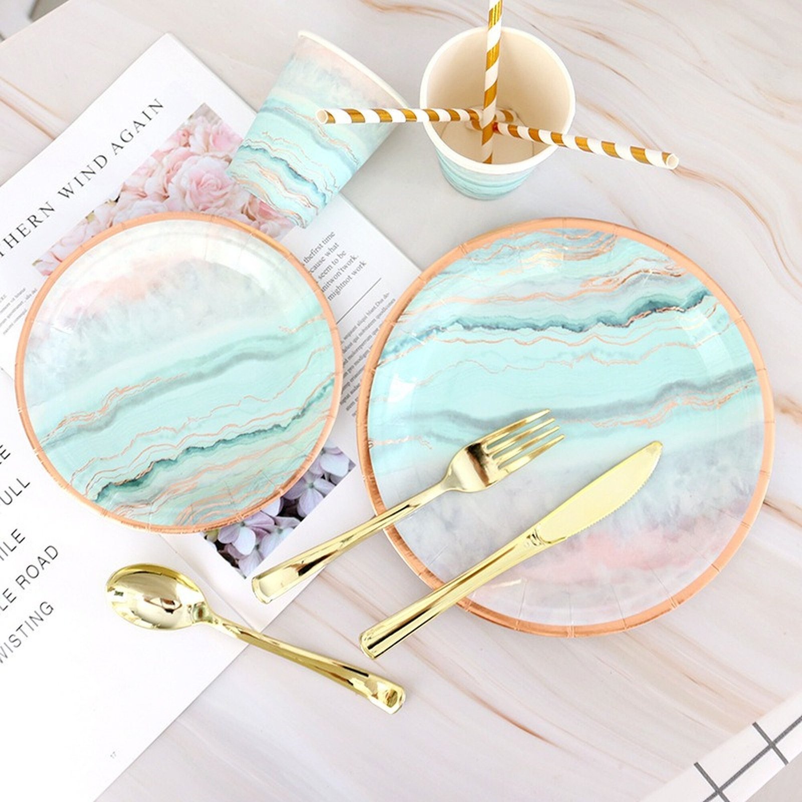 Blue Wave Disposable Party Tableware Dinnerware Wedding Party Supplies Plates Cups Napkins Wedding Birthday Ink Painting Decorations