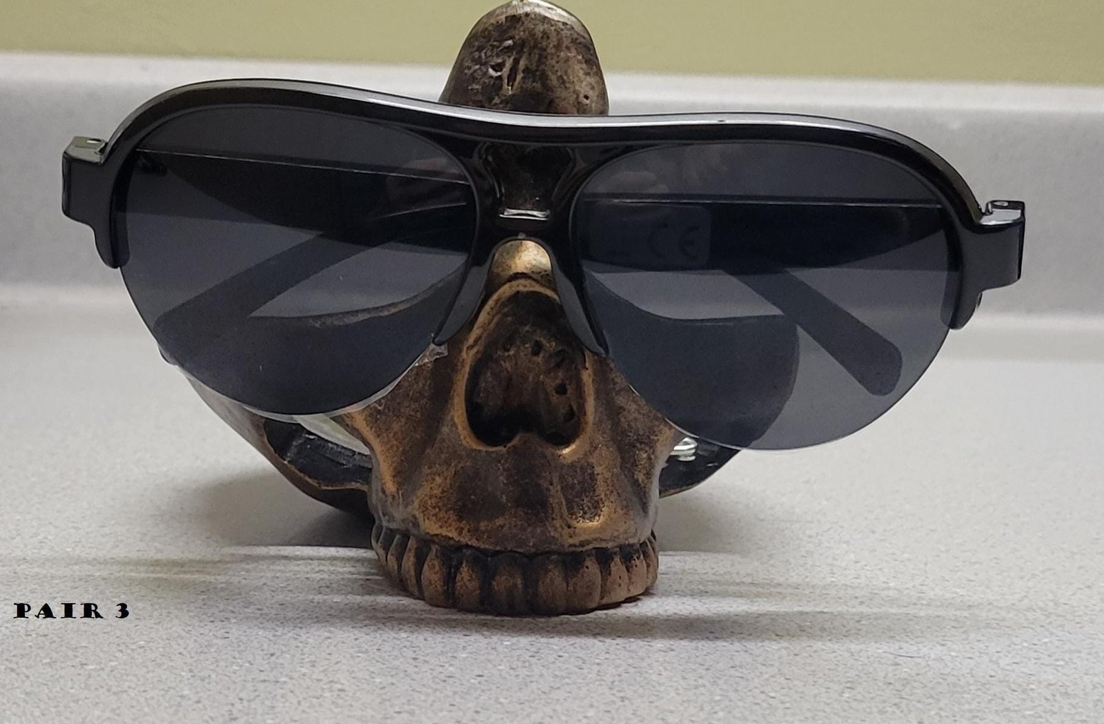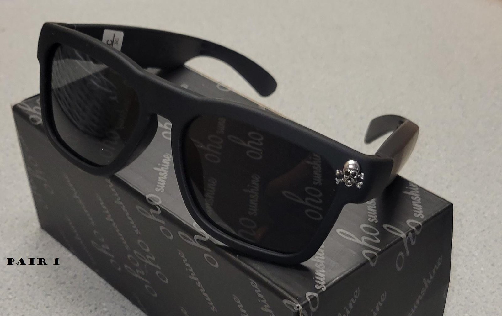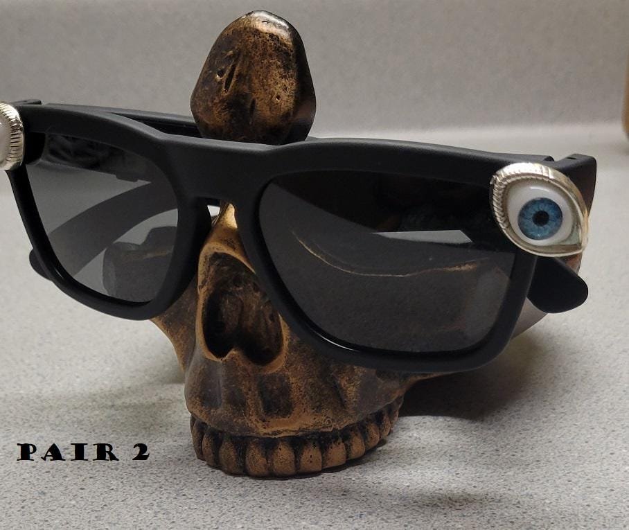 Pair1-Black w/Skulls ,Pair1-NoCharms ,Pair1-Brass charms ,Pair1 – Gold charms ,Pair1-Silver charms ,Pair2-Eyeball charms ,Pair2-NoCharms ,Pair3-Black Aviators ,Pair4-MirrorAviators |