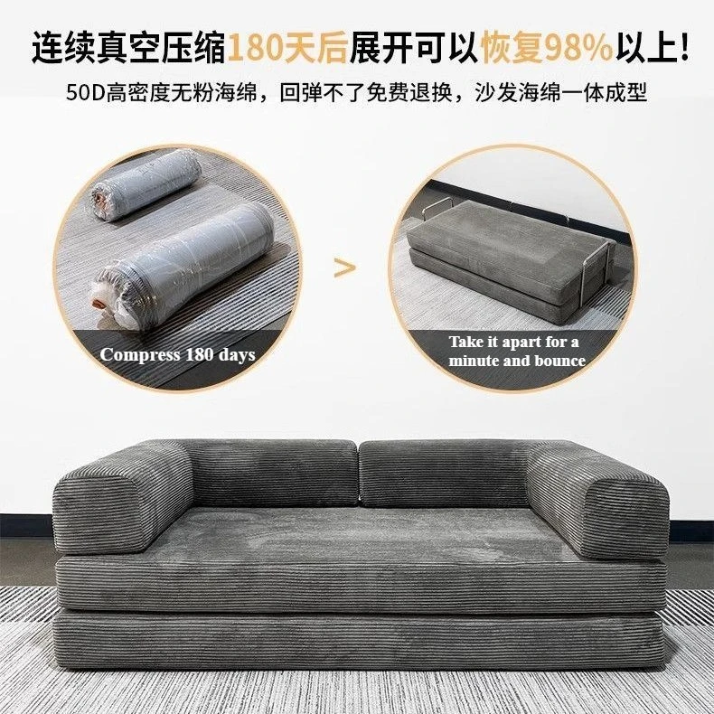 Boneless Couches for Living Room Air Compression Fabric Flannel Deformable Modular Couch Sectional Composable Teddy Sofa Bed