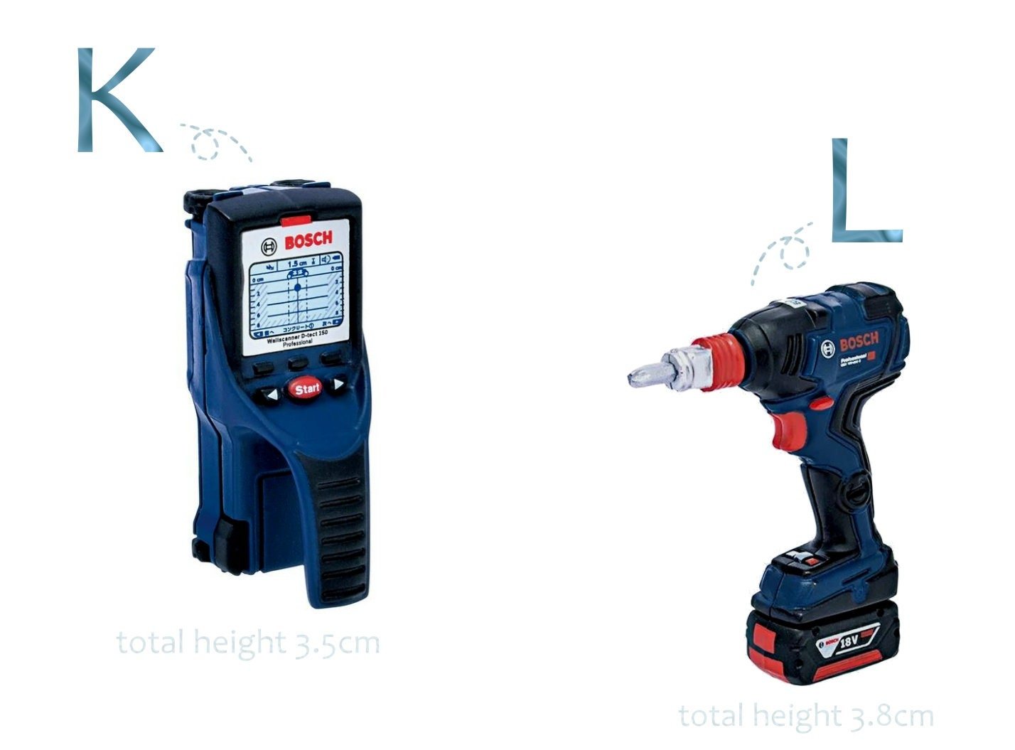 Bosch dollhouse miniature professional power tool series collection – saver saw, cordless impact driver, multi-box, vacuum cleaner & etc