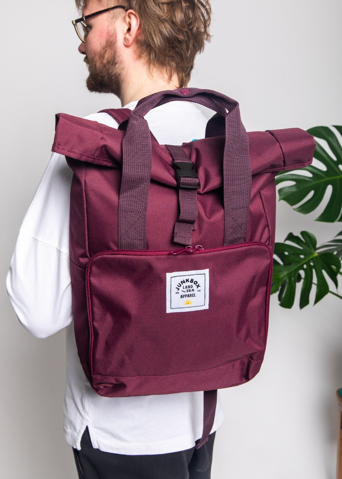 Be the first to review “Burgundy Recycled Roll-Top Backpack: 13"e; Laptop Bag” Cancel reply