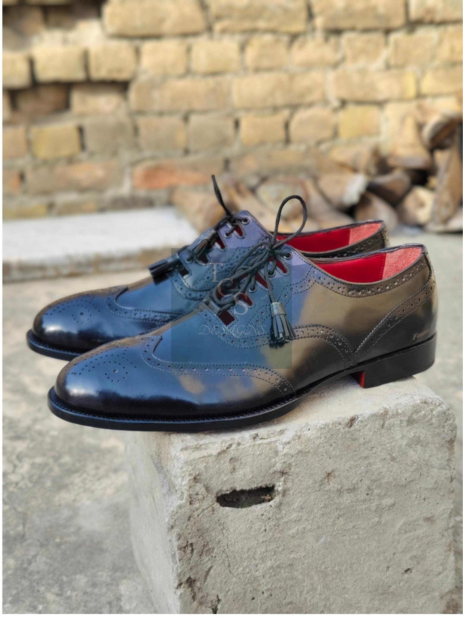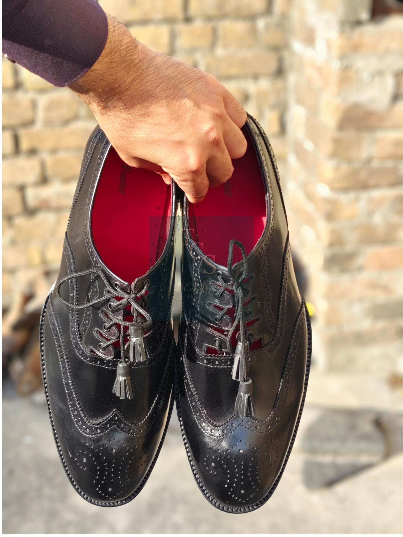 Buy New Bespoke Handmade Genuine Black Leather Oxford Wingtip Brogue Lace up DressFormal Shoes