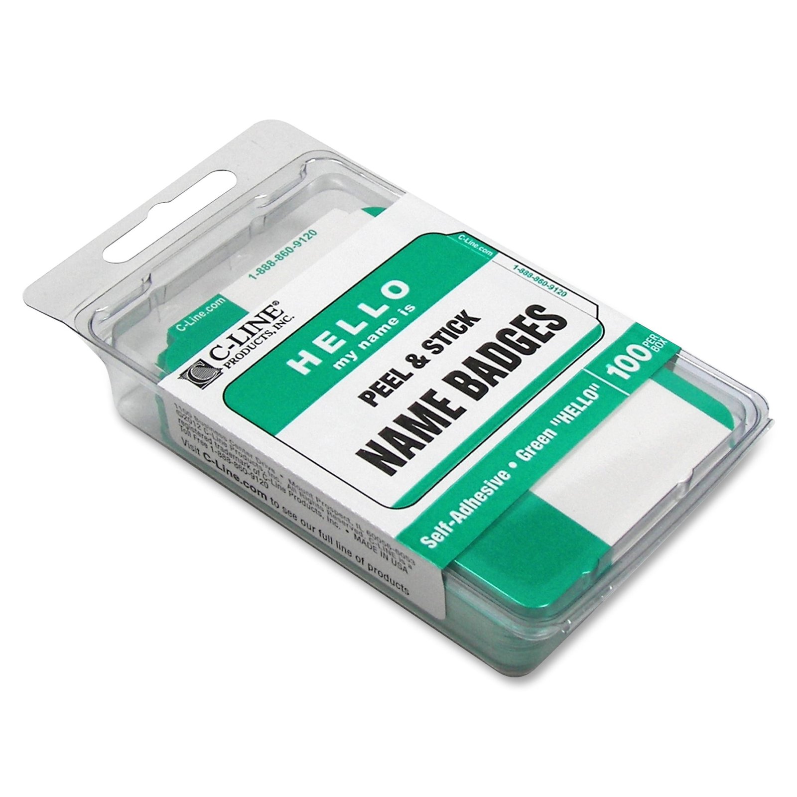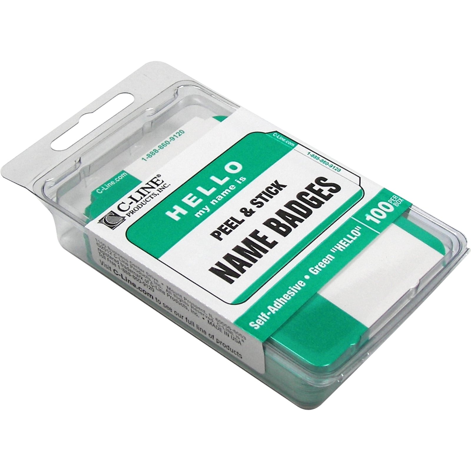 C-Line HELLO my name is… Name Tags, Green, 100 / Box Quantity