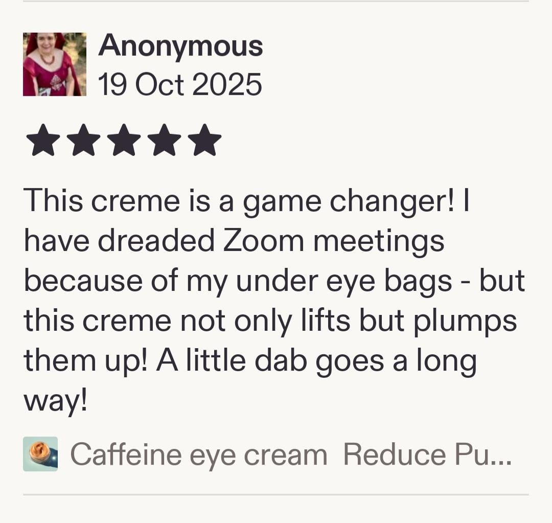 Gently refresh your under-eye area with our Caffeine Eye Cream — a lightweight, botanical moisturizer made for daily self-care. Perfect for morning or evening routines, this natural eye lotion absorbs easily and pairs beautifully with your skincare rituals.