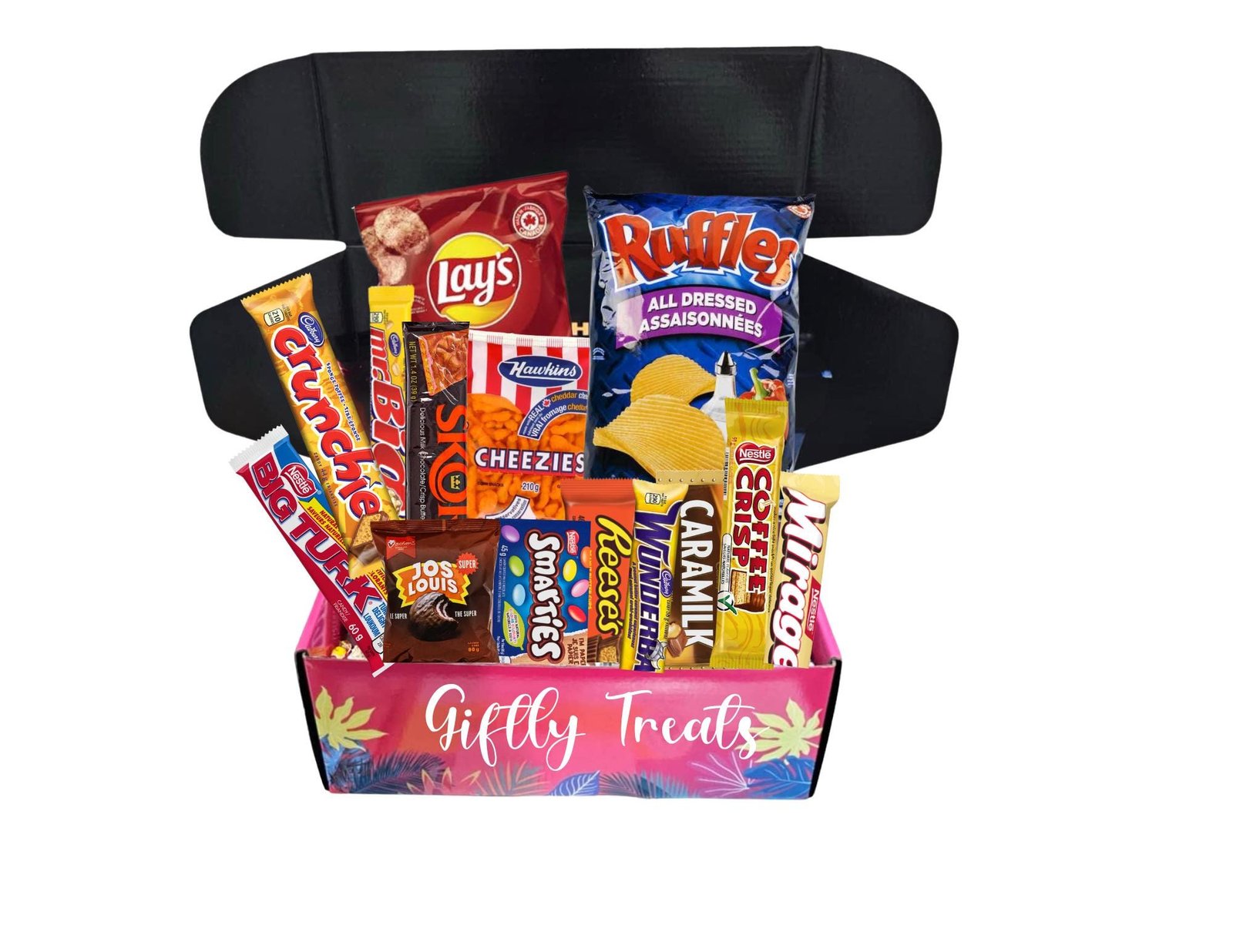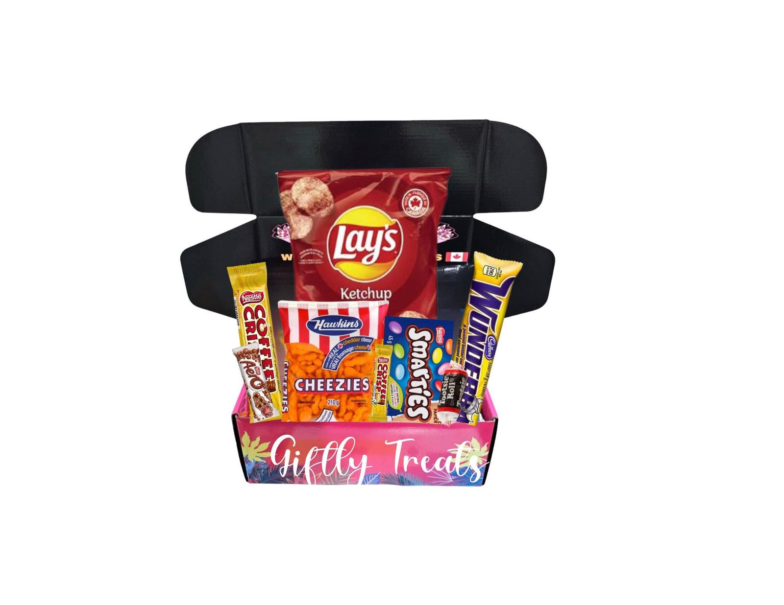 The perfect Easter Gift Box. Comes in three different sizes. Tasty Canadian snacks + Candy box. This delicious Canadian snack box is filled with delicious chocolates, chips, and snacks. Looking for chocolate gifts? This Canadian Chocolate box is the perfect gift for someone who loves Canadian chocolates or wants to try them out! Want to gift someone who used to live in Canada? This will be the perfect gift for them! Food hamper filled with Cadbury, Ketchup lays, Tim Hortons Coffee, Cheezies, Mars, Poutine Gravy, and much more! If you haven’t tried these delicious snacks yet then you are missing out! This basket can be used as a gift for any occasion such as a gift for Valentine’s, Christmas Gift, a Birthday Gift, Gifts for her, Gift for mother, Gift for father etc… Taste of Canada in this delicious chocolate gift. What are you waiting for? Buy a Canadian snack.