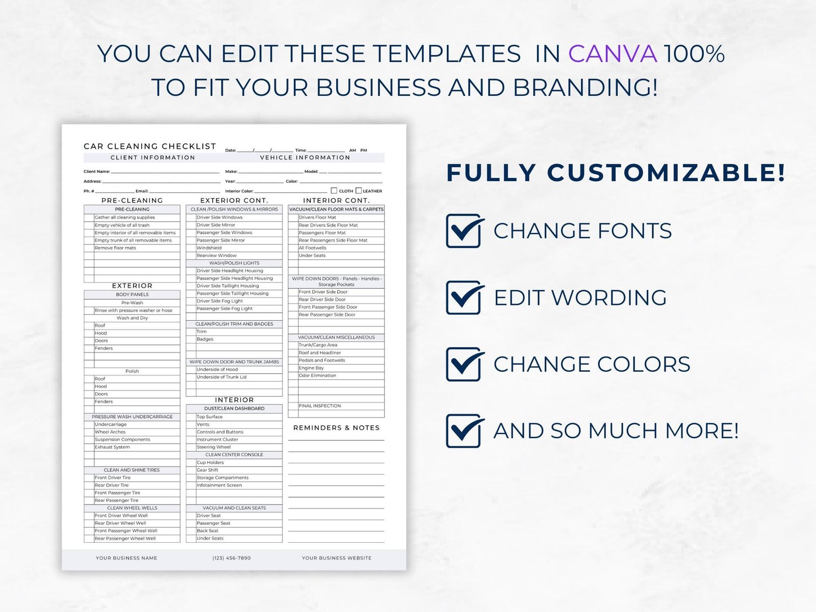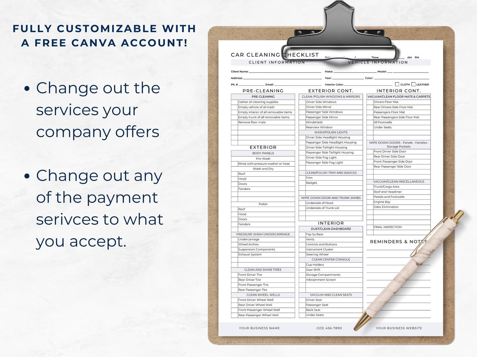 Professional Car Cleaning & Detailing Checklist – Perfect for Your Auto Business | Streamline your workflow and deliver spotless results with this comprehensive checklist tailored for car cleaning and detailing professionals.