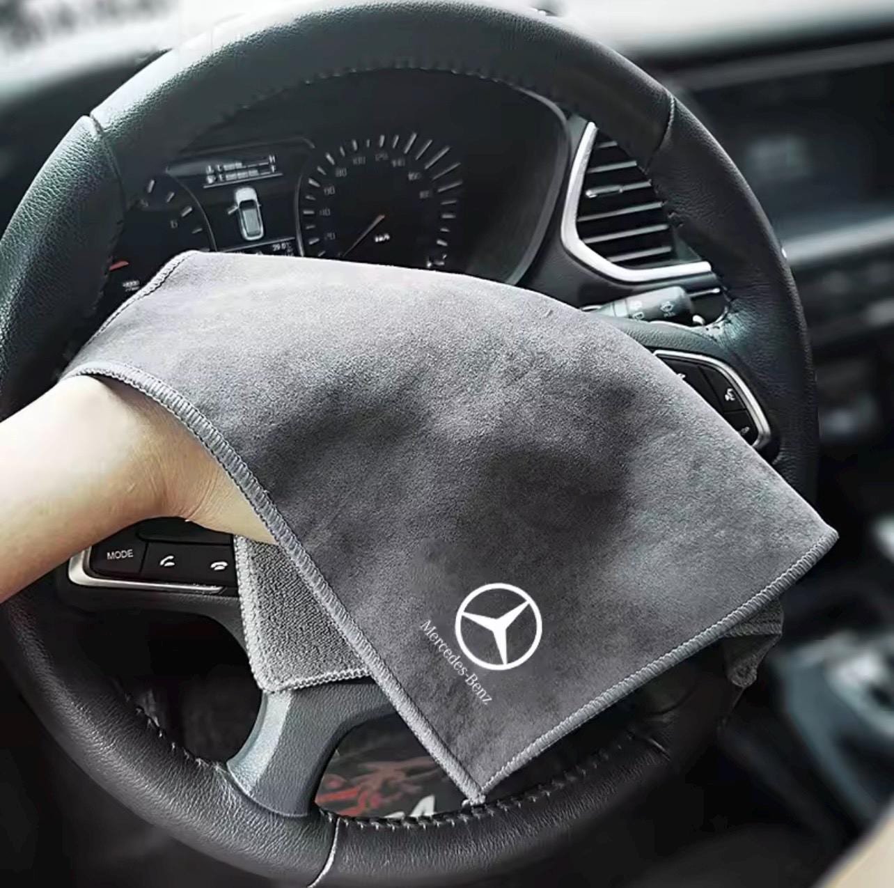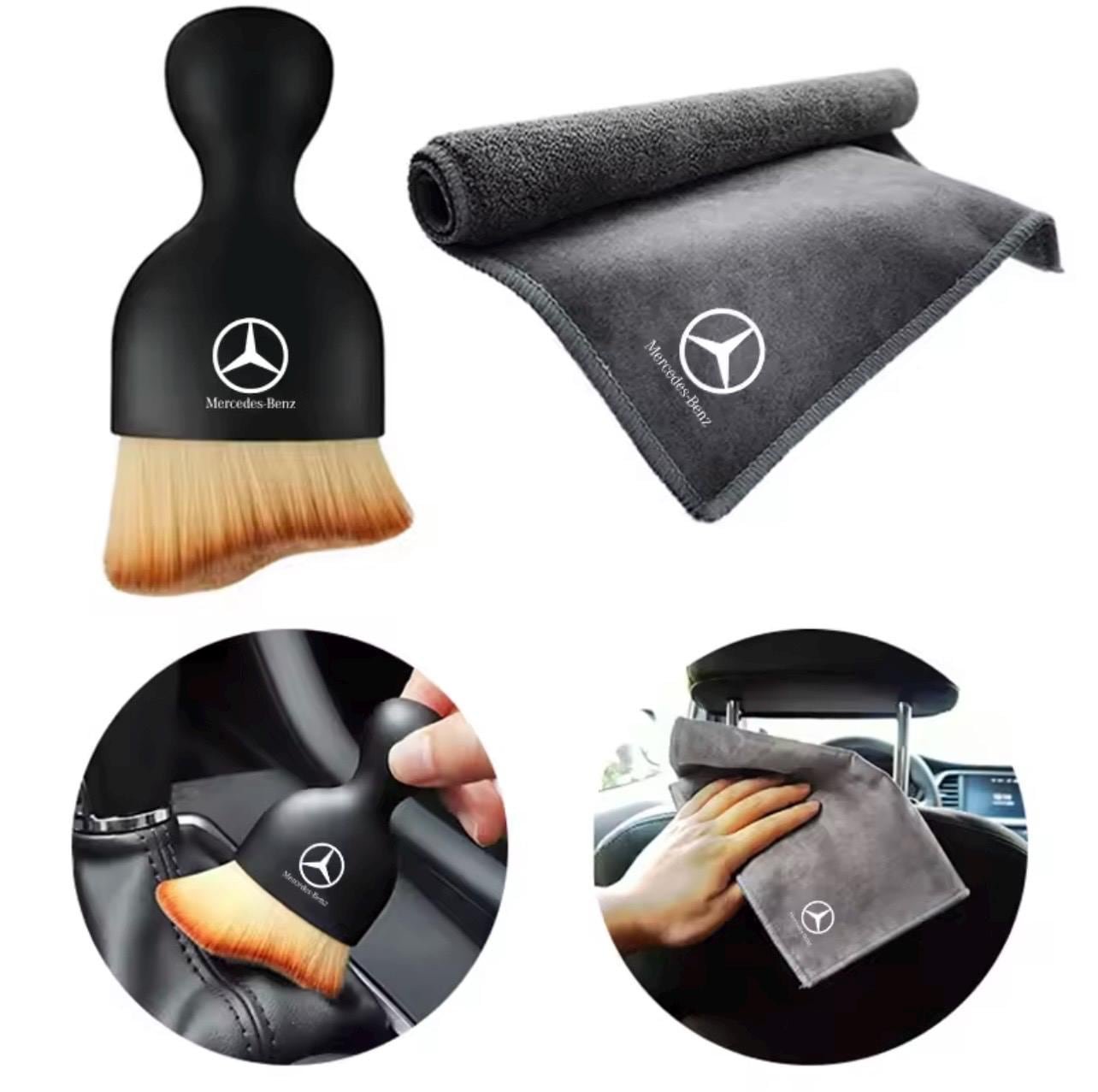 Car Cleaning Soft Brush And Suede Rag for Mercedes-Benz. Grey and Red