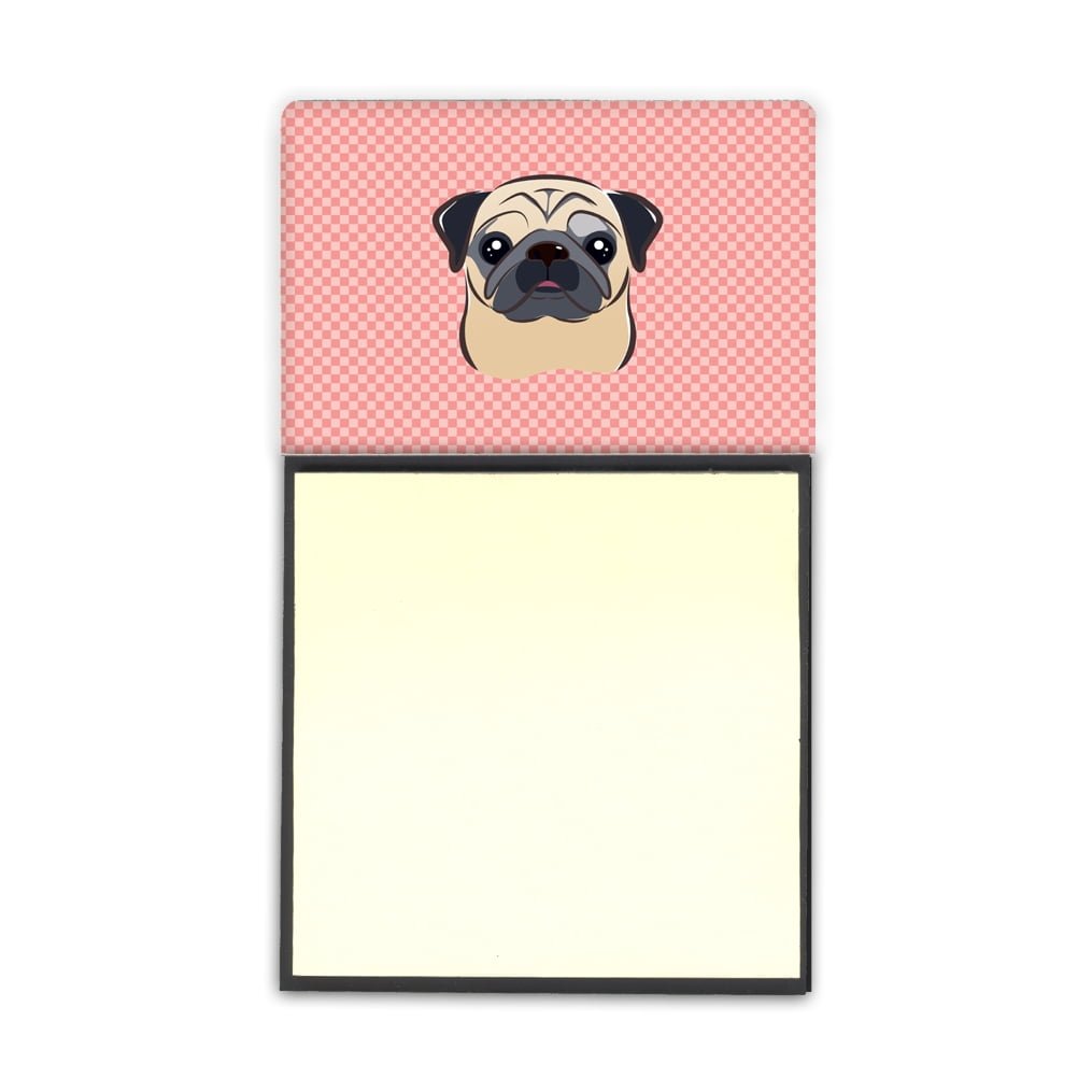 Carolines Treasures Checkerboard Pink Fawn Pug Sticky Note Holder Large multicolor Sticky Note Holder featuring breed specific Pug artwork from one of our artists or graphic designers. TAKE note! The perfect gift for anyone! This Sticky Note Holder is something special. Artwork is added to the top of the sticky note holder and a small pad of 3 inch x 3 inch sticky notes are included at the bottom. The holder is refillable by removing the last piece of paper of a pad of postits and sticking it to the board. Perfect gift for everyone in your office at work all of your facebook friends your dog groomer hairdresser or even anyone who might have trouble remembering all the import things in life. Make a grocery list or leave a note for your husband or wife. The bottom board is rigid and you can even add a business card size magnet sold seperately to the back of the board to magnetize the holder. This Sticky Note Holder is from Carolines Treasures Dogs category of products.Features
