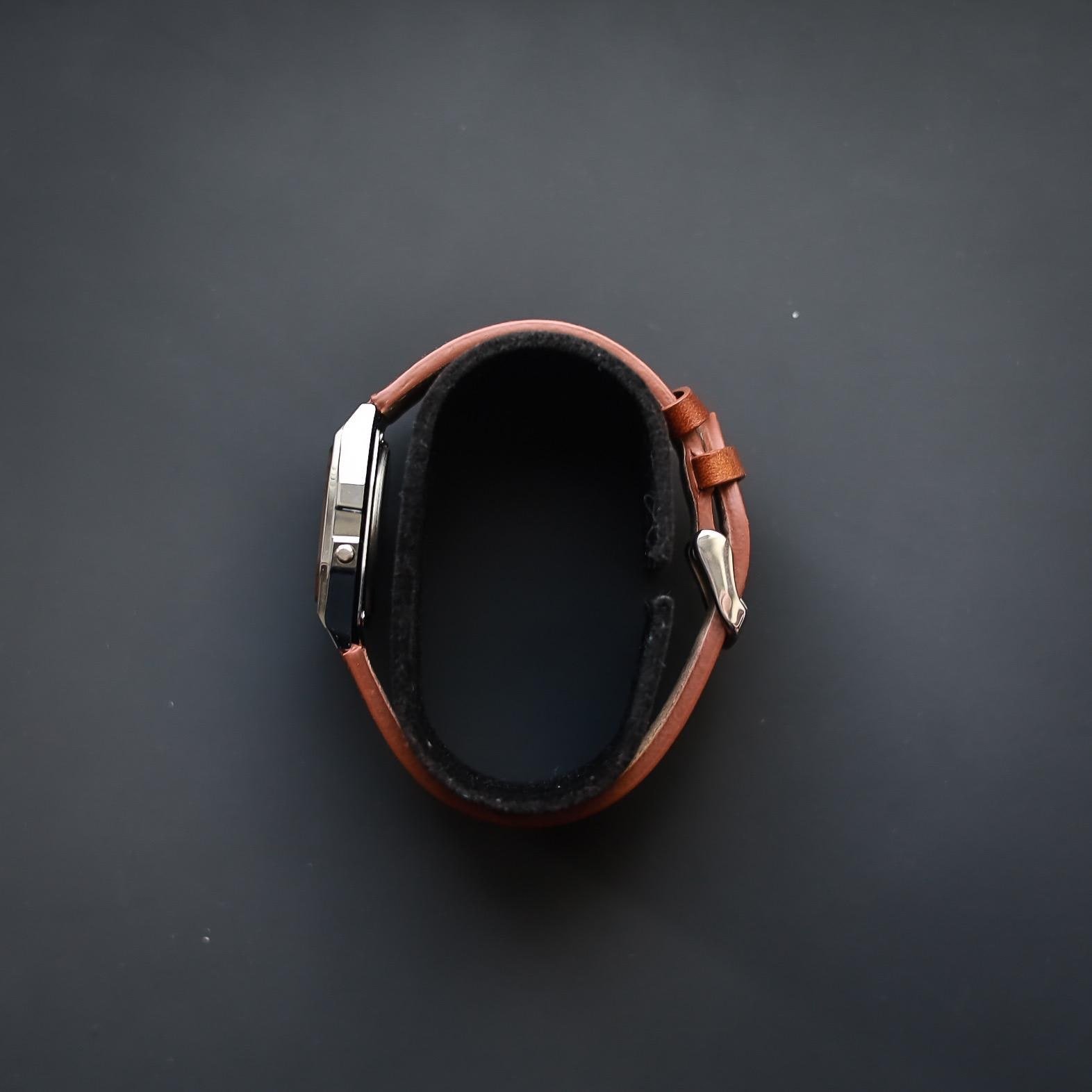 Casio A158 Sport Watch with Custom Brown Leather Strap.