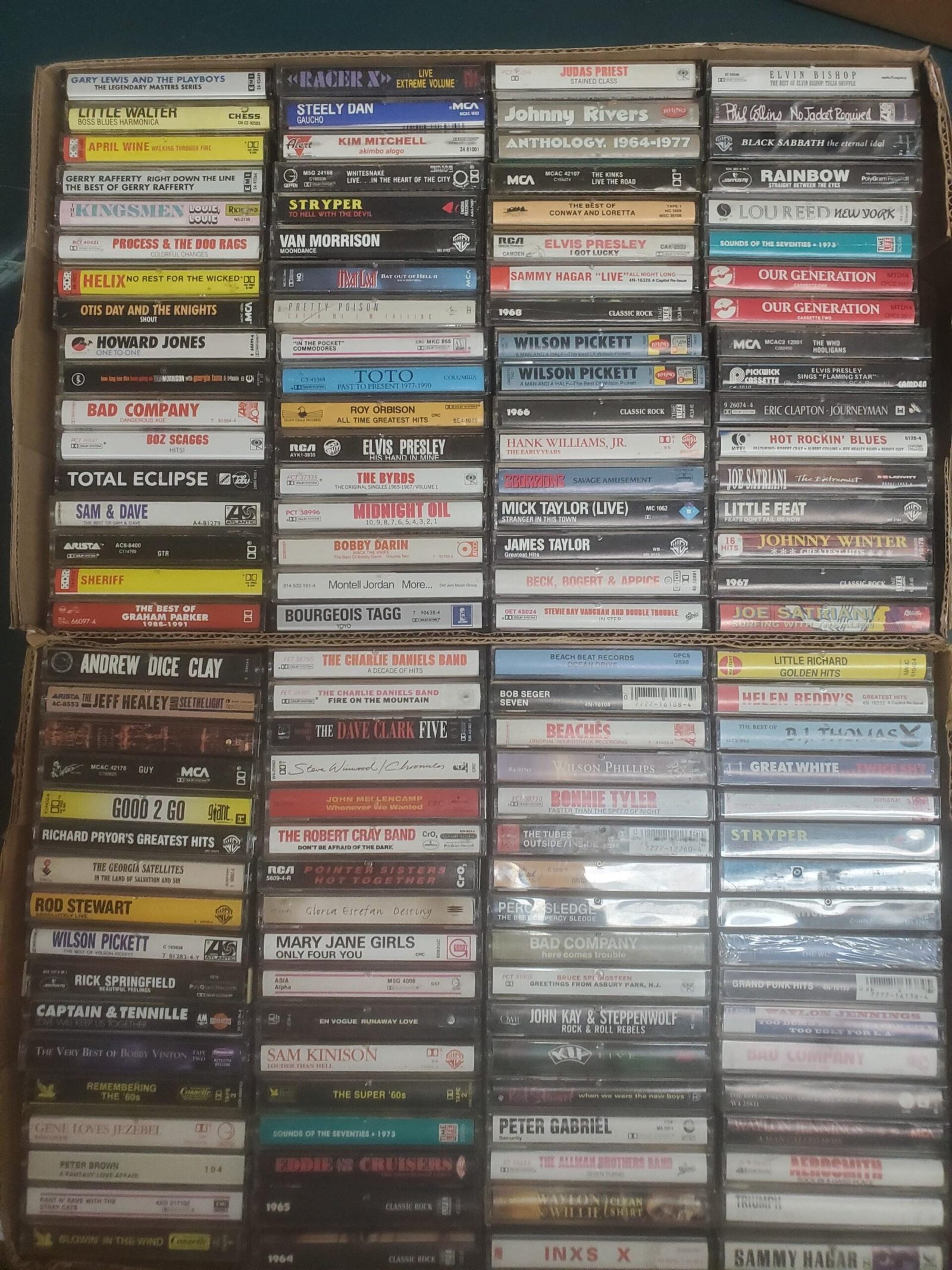 I have listed each tape individually below by ARTIST, TITLE, YEAR, and Label