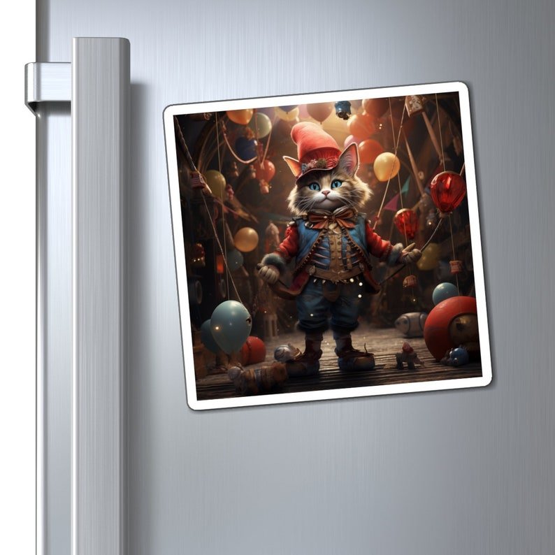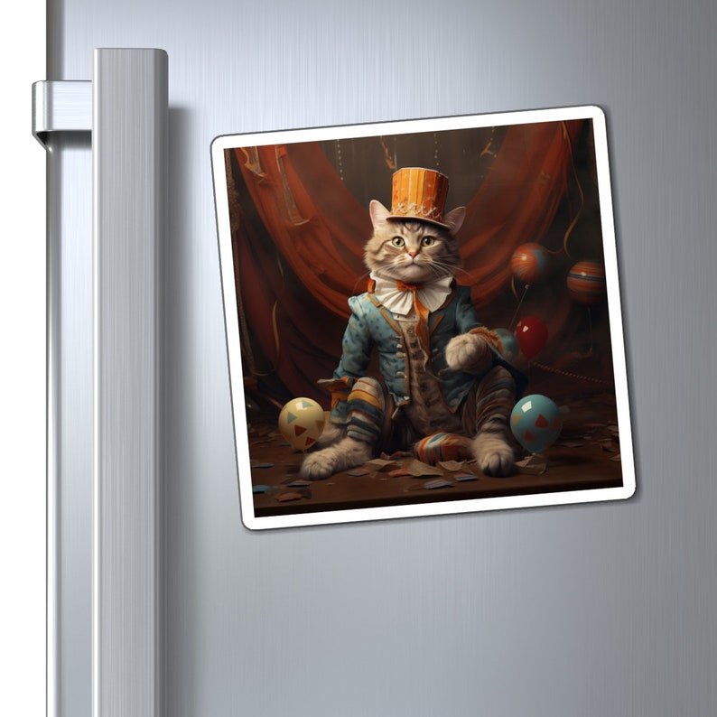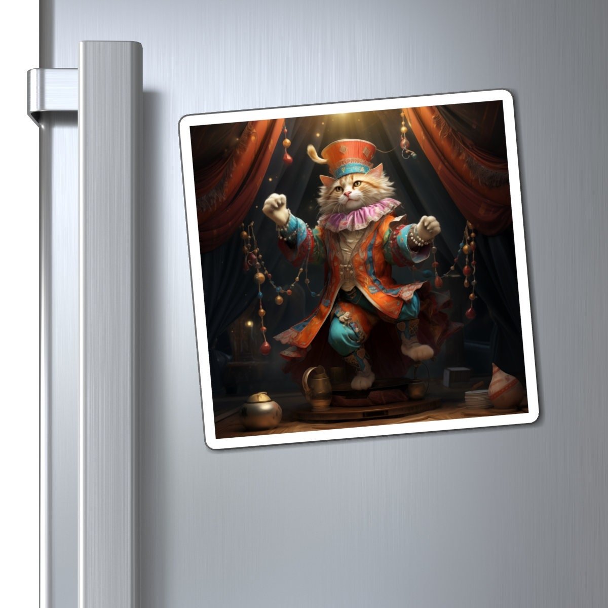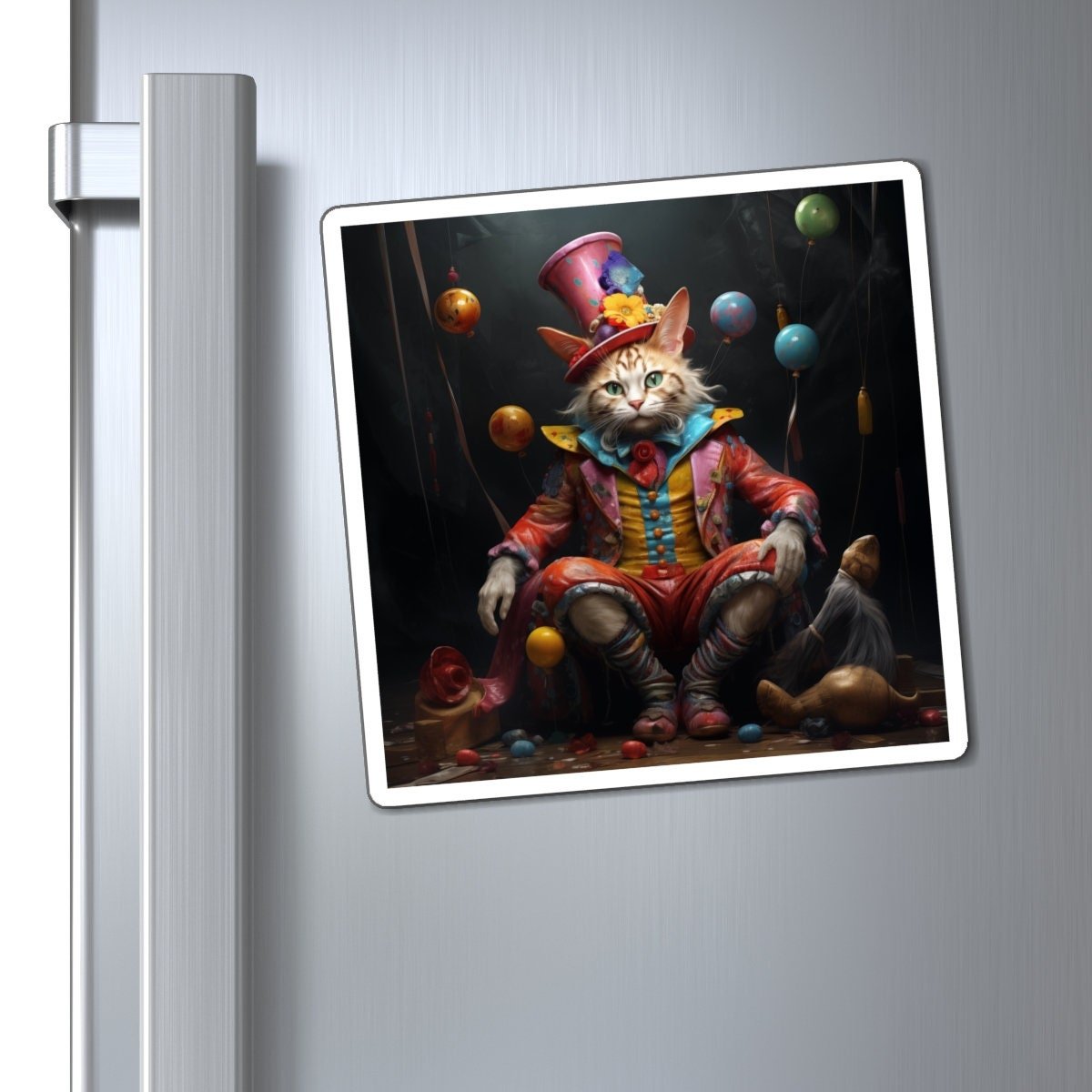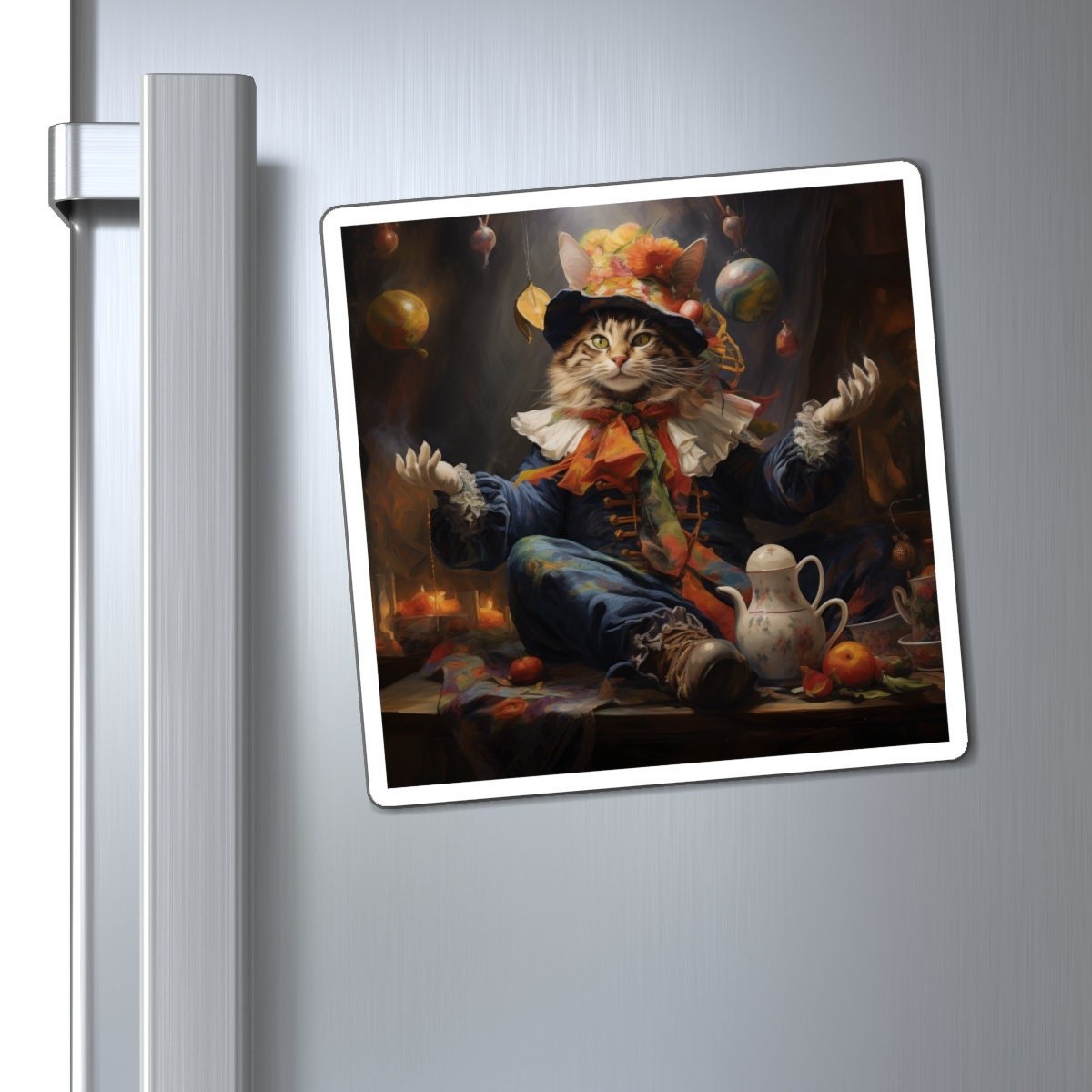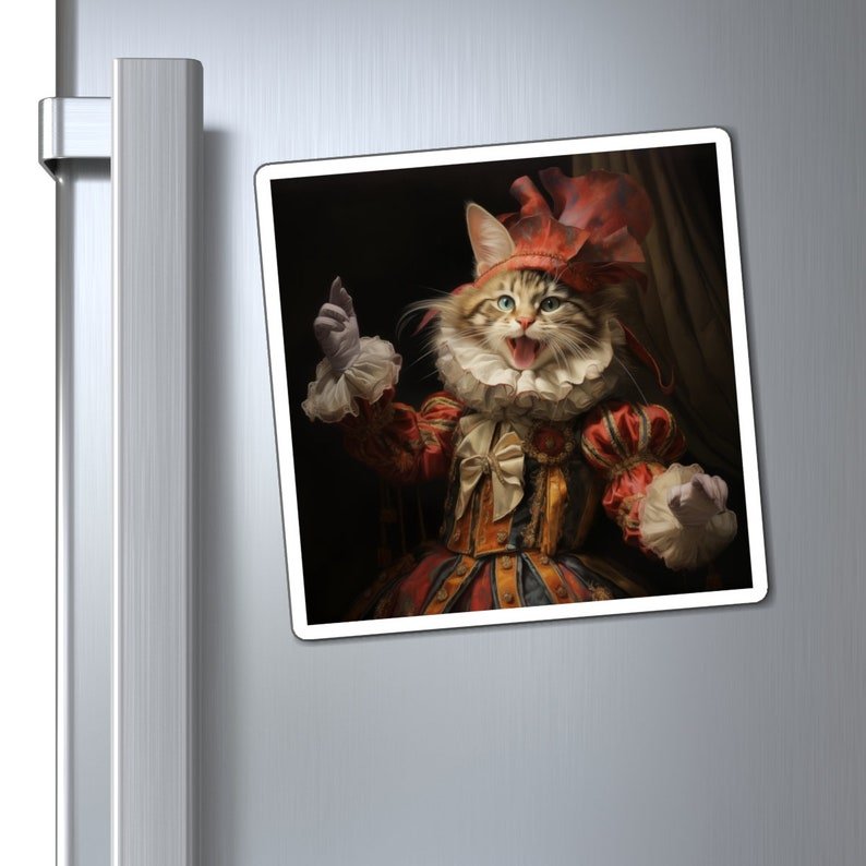 Cat Fridge Magnet, Jester Cat Magnet, Art Print Cat Magnet, Joker Cat Magnet, Dishwasher Refrigerator Magnet, Kitchen Decor, Cat Lover Gift