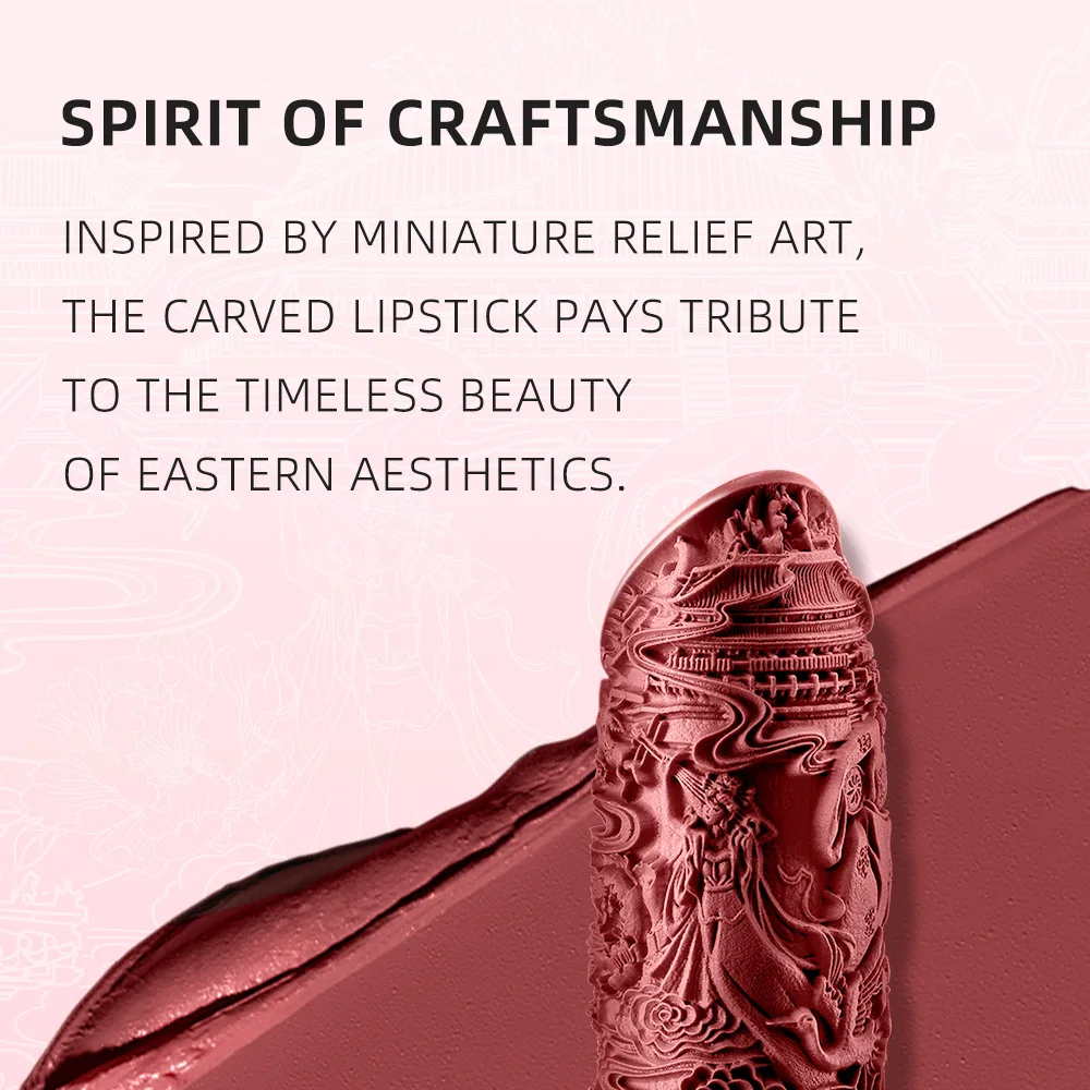 Inspired by Chinese Traditional Paintings, the outer case embodies Eastern culture and craftsmanship. The lipstick is intricately carved using miniature relief sculpture techniques, celebrating the beauty of Chinese intangible cultural heritage. A true fusion of makeup and art.