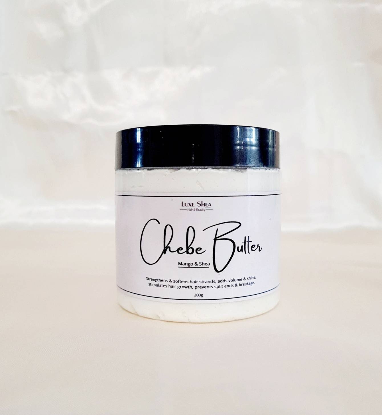 Our Chebe Buttercream is a natural blend of unrefined Mango and Shea butter blended with cold-pressed organic oils.
