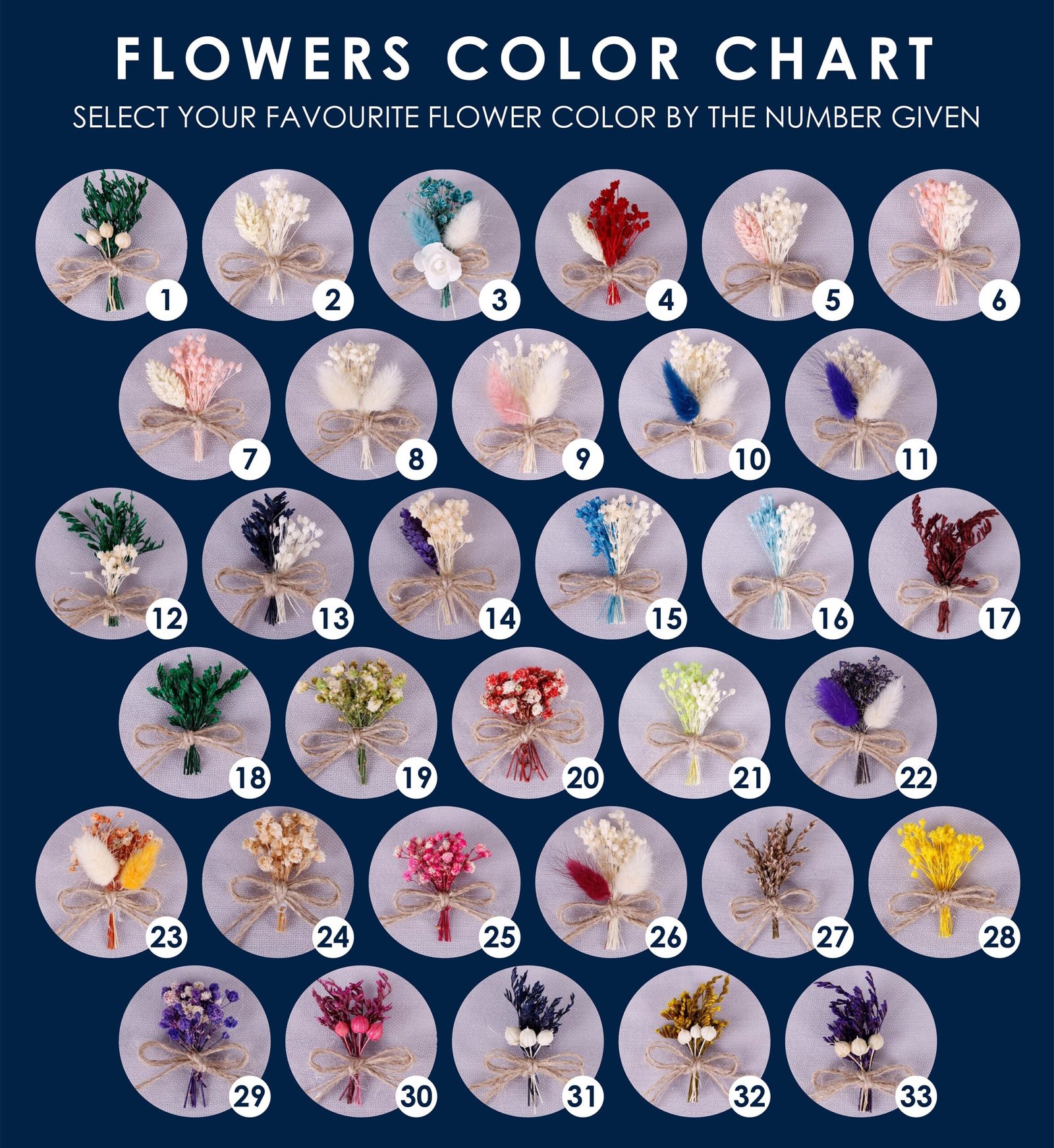 * If you want red/green flowers NO NEED TO WRITE, but if you want different flowers please select and write flowers numbers from 33 option in the listing picture.