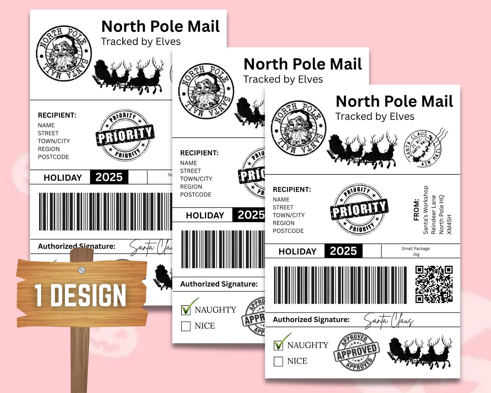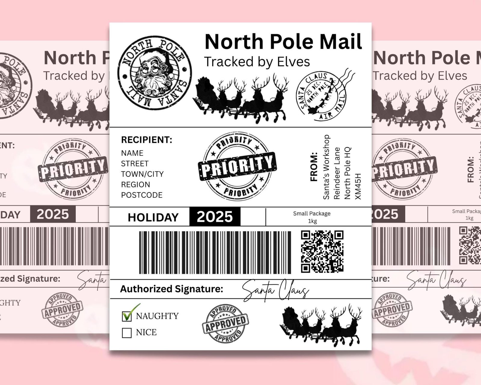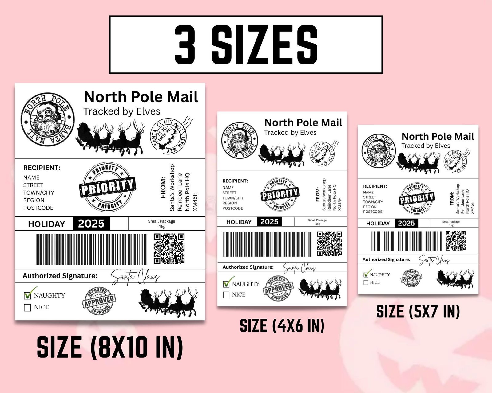 Christmas Shipping Label Canva Digital Download | PDF | PNG | 5 Designs | Editable Template | Santa Mail | Thermal Printer, 6×4, 8×10, 5&quote;x7&quote;