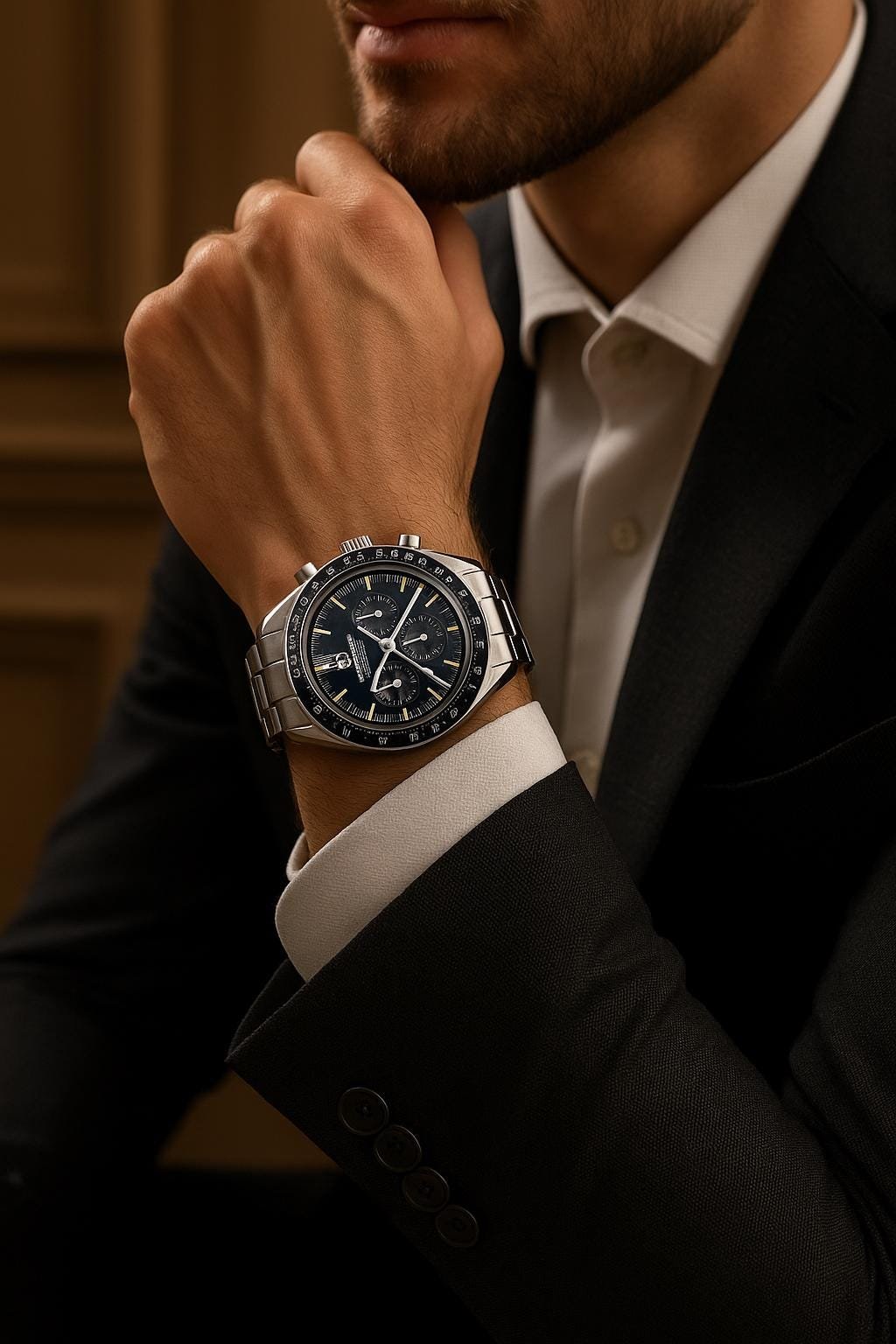 Designed for modern gentlemen who appreciate craftsmanship, this chronograph combines sporty character and refined elegance, perfect for both business meetings and casual evenings.