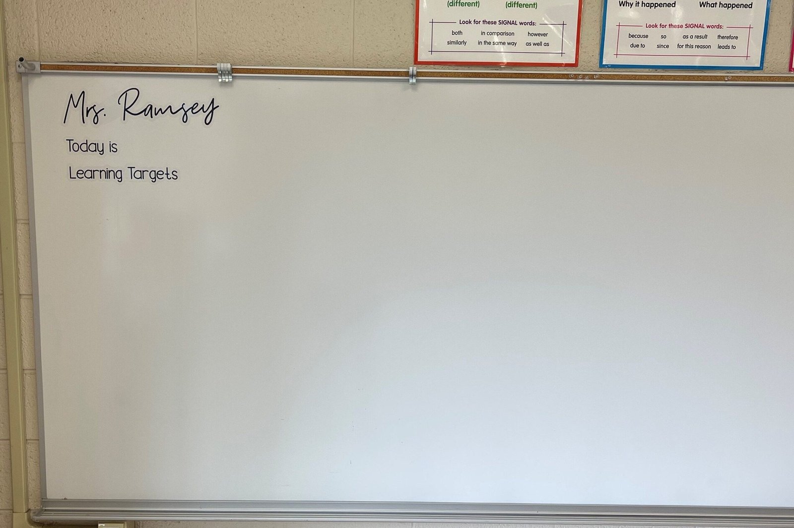 You will receive the following clings: Teacher Name cling, “Today is” cling, and “Learning Target” cling. Each cling is separate so you can apply and reapply them wherever you like on your whiteboard.