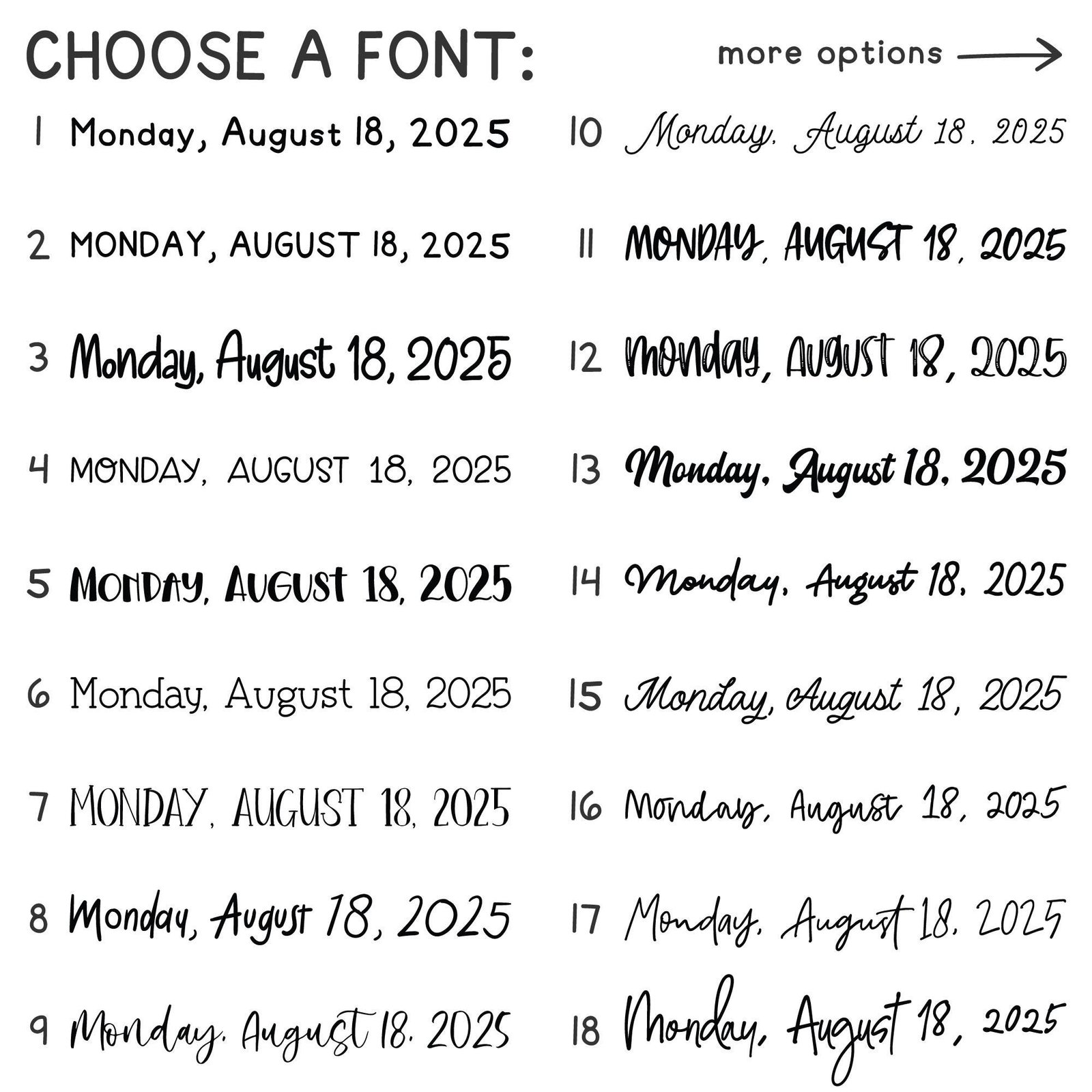 Third, choose your fonts. Options are in the listing photos. Leave your choices in the personalization.