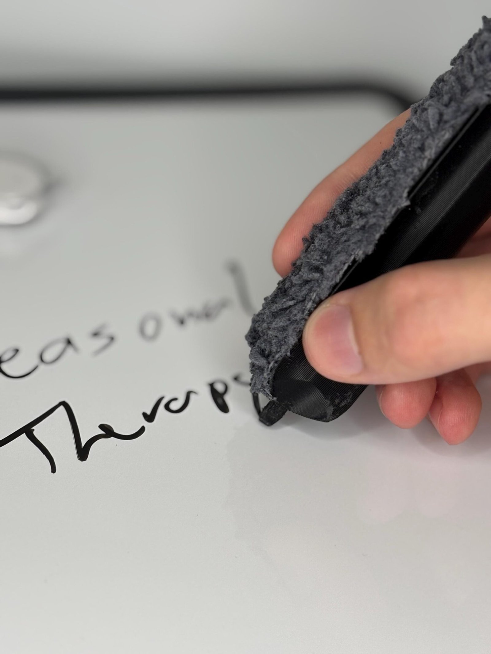 The all-in-one writing & erasing solution. Each marker features a built-in microfiber eraser body so you can write, spot erase, or full-wipe without ever reaching for a separate eraser. Sold as a convenient 5-pack, perfect for classrooms, offices, and home boards. The microfiber wraps around to the nib end, allowing you to tilt the marker for precision spot erasing, while the opposite end is also covered for easy fingertip touch-ups or one-hand twirls. A secure friction-fit cap keeps your ink fresh and conveniently attaches to either end, so you’ll never lose it.