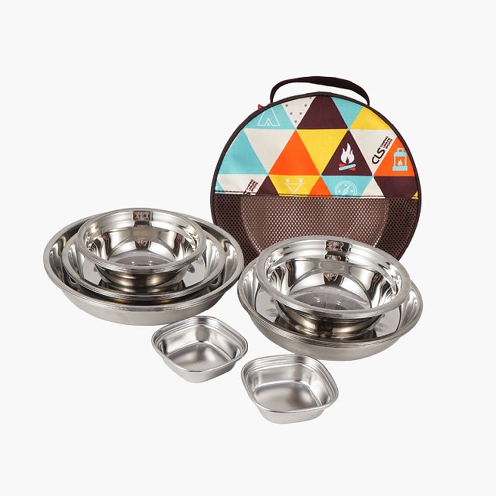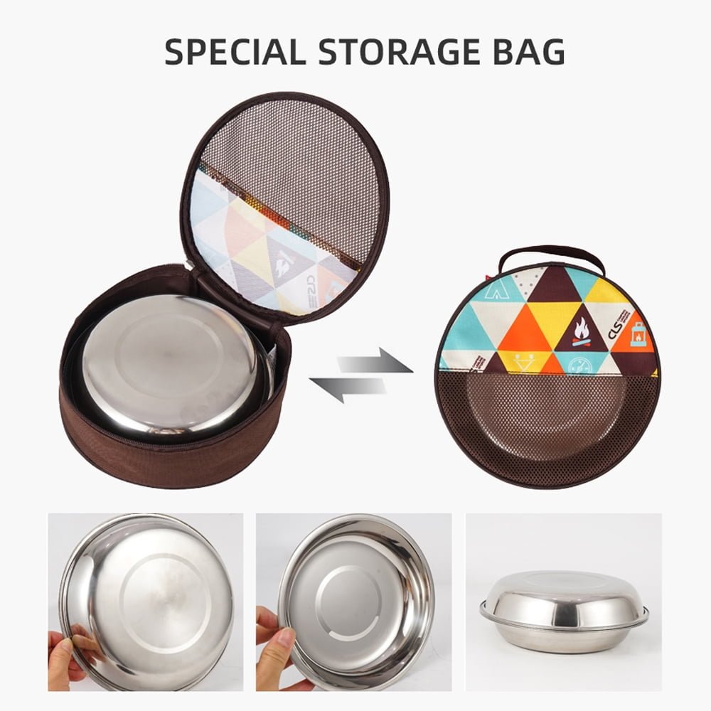 CLS 22PCS Portable Dinner Plates Camping Tableware Set Polished Stainless Steel Bowls Soup Pots with Storage Bag for Outdoor Cooking Camping Picnic Barbecue