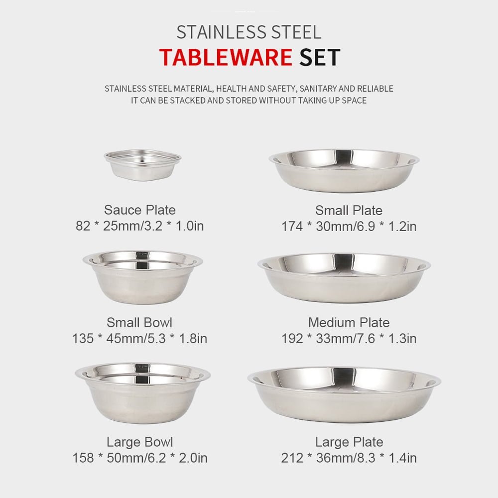 22-piece tableware set can be used outdoors and in the kitchen, which is convenient and practical. With storage bag, it is lightweight and easy to carry.