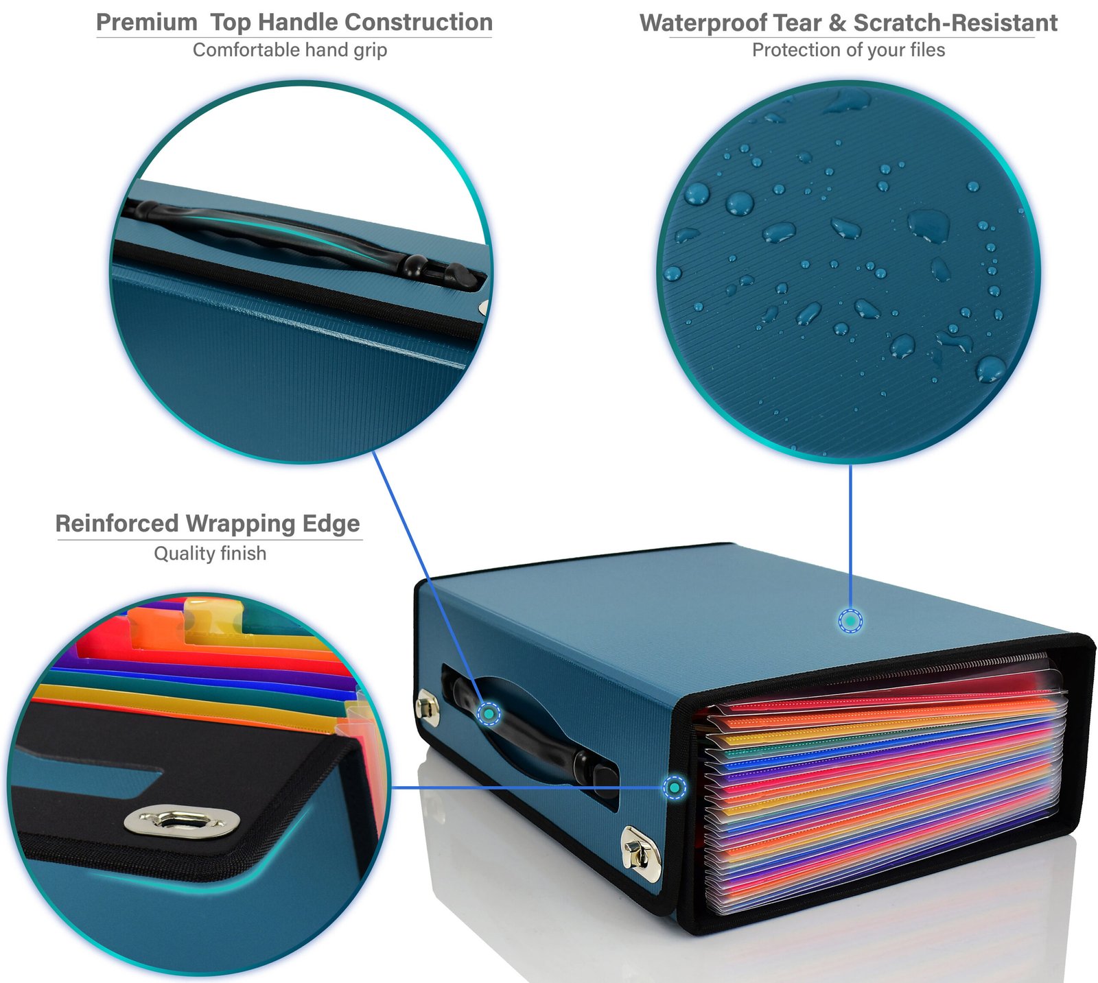 CNK Accordian File Organizer 24 Pockets Expanding File Folder For Letter, A4 Document Holder with Durable Handle