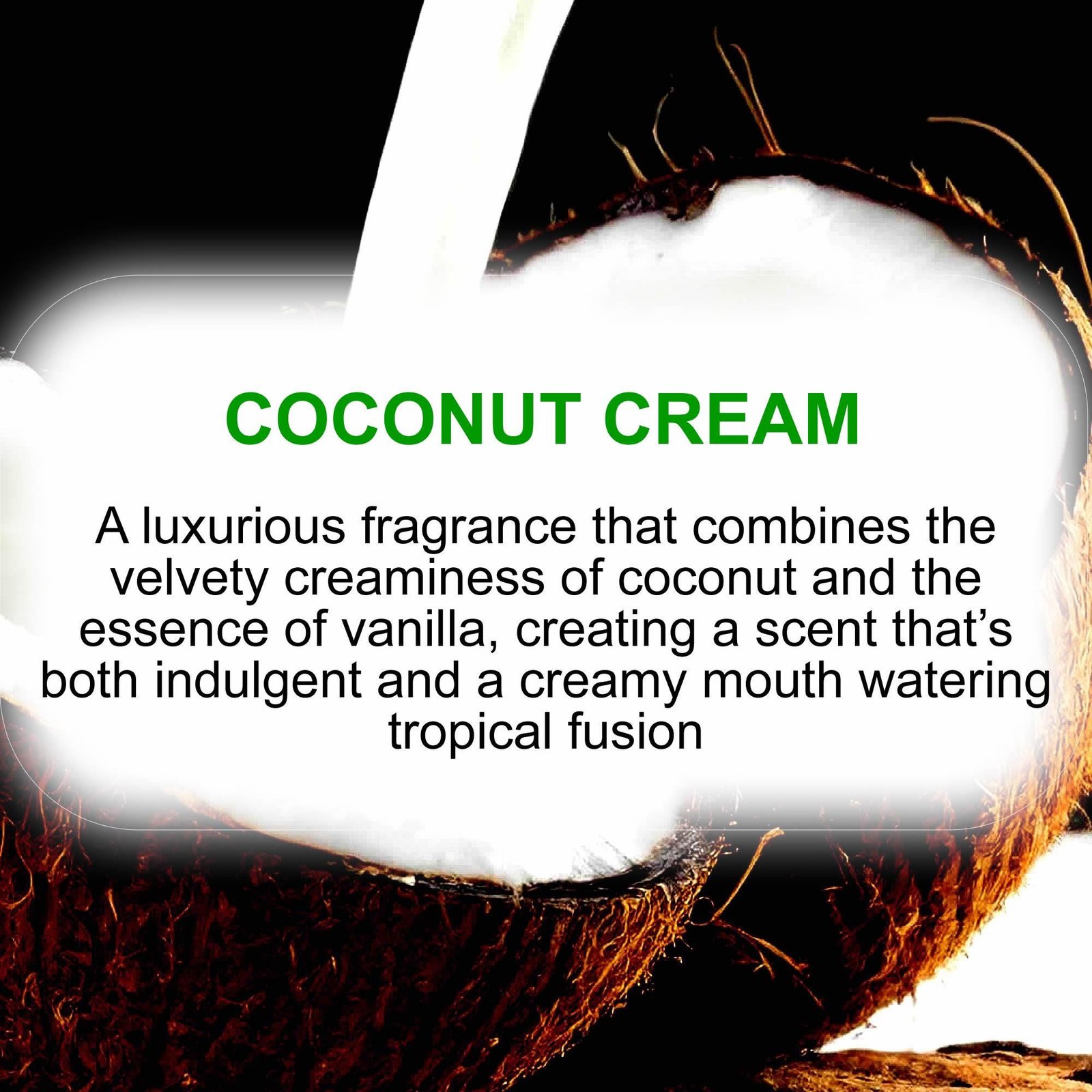 A luxurious fragrance that combines the velvety creaminess of coconut and the essence of vanilla, creating a scent that’s both indulgent and a creamy mouth watering tropical fusion.