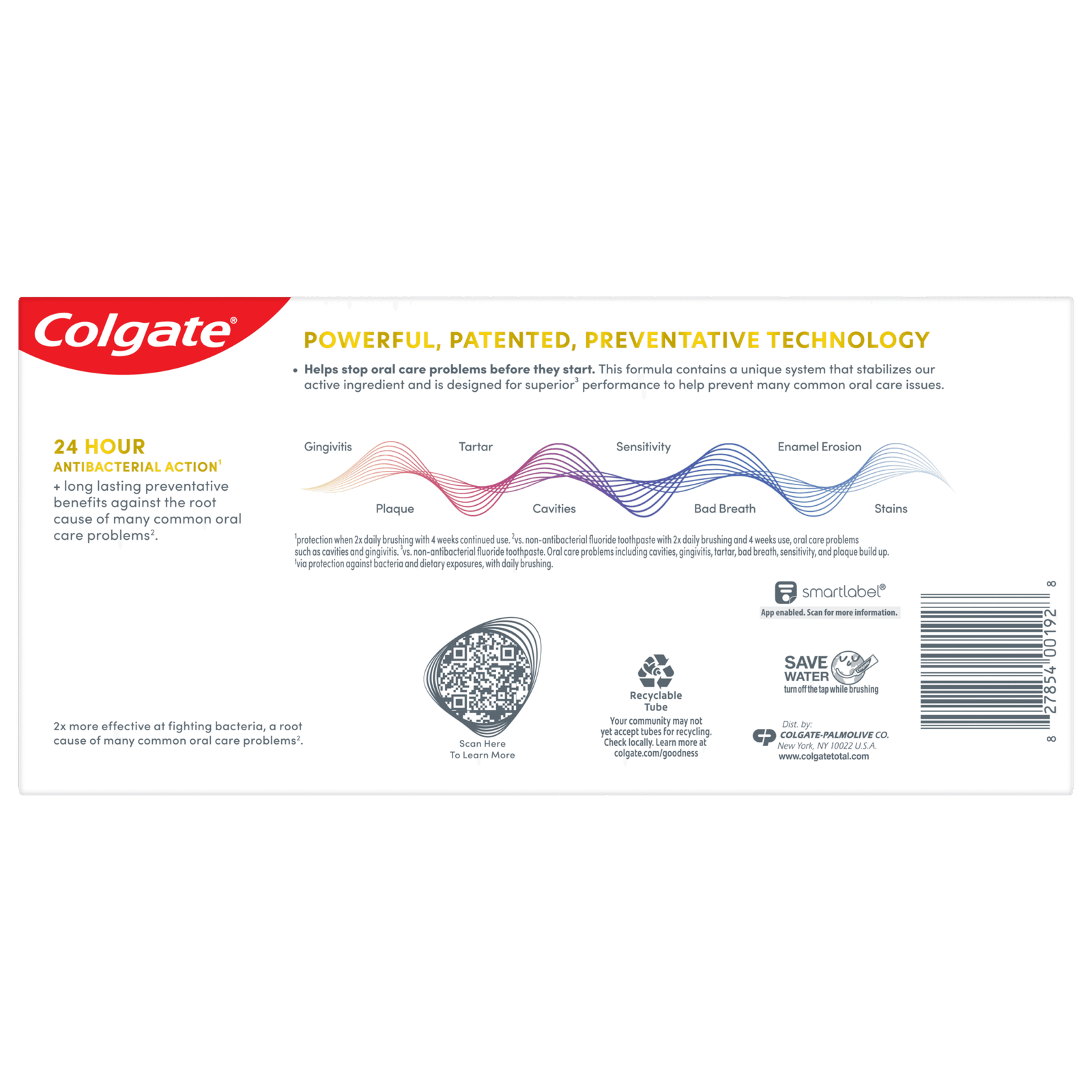 - For superior performance** against sensitivity, plaque, gingivitis, and tartar, choose Colgate Total Active Prevention Toothpaste