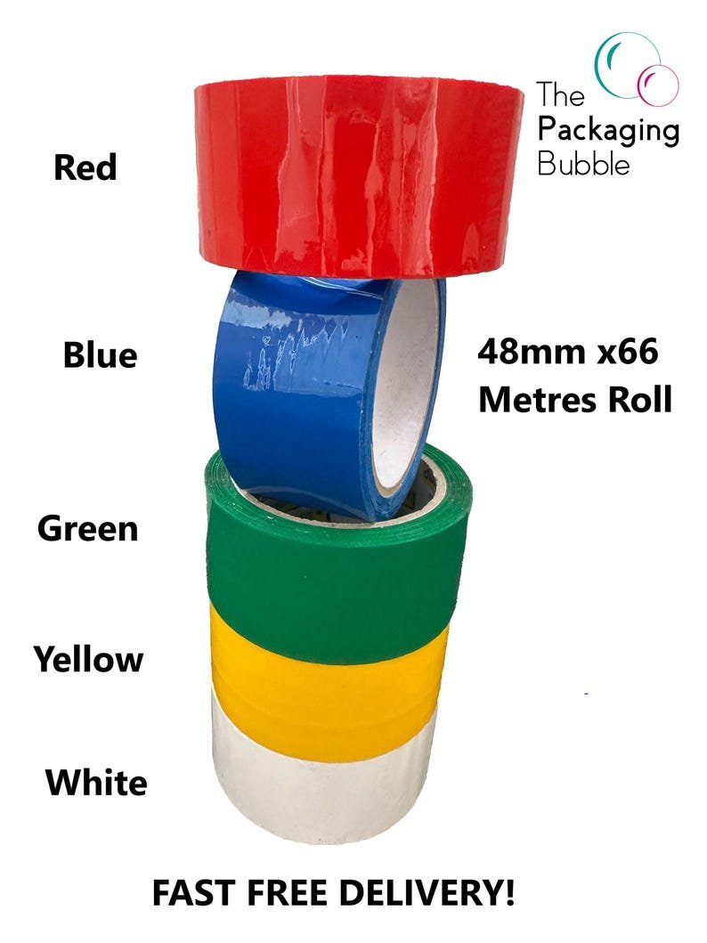 Coloured Strong Packaging Parcel Packing Tape 48mm x 66m Red Blue White Yellow Green
