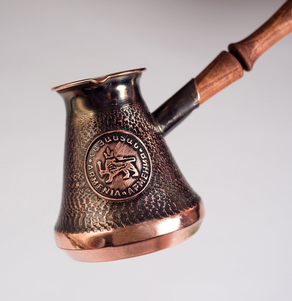Copper Coffee Pot Maker, Jazzve, Cezve Ibrik, Armenia Jezve Jazve wooden handle ARMENIAN coffee maker, handmade, turka, personalized