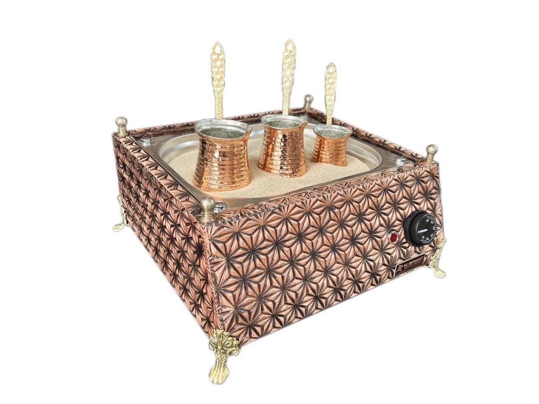 Copper Turkish Coffee Maker | Medium Size Rec Star Design | Authentic Heating Sand Machine for Perfect Brew
